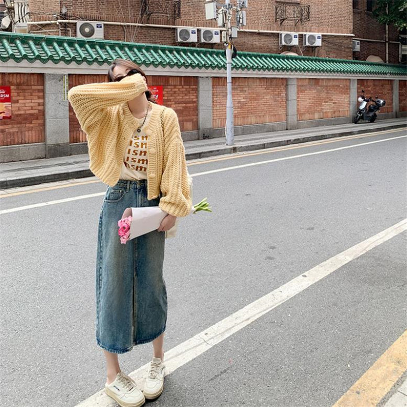 | nameOriginal | Japanese style retro yellow twist thick wool cardigan sweater for women Spring and Autumn New loose lazy style all-match sweater |