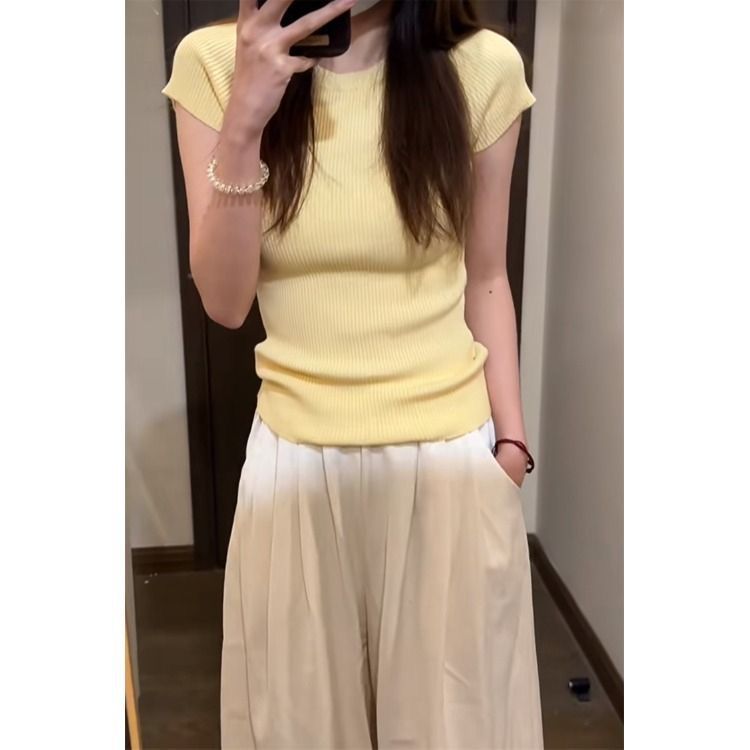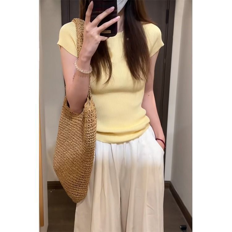 | nameOriginal | Japanese Style Simple Basic Knitted Sweater Korean Style Slim-fit Slimming All-match Top Sweet Hot Style Thin Short Sleeve Summer New |
