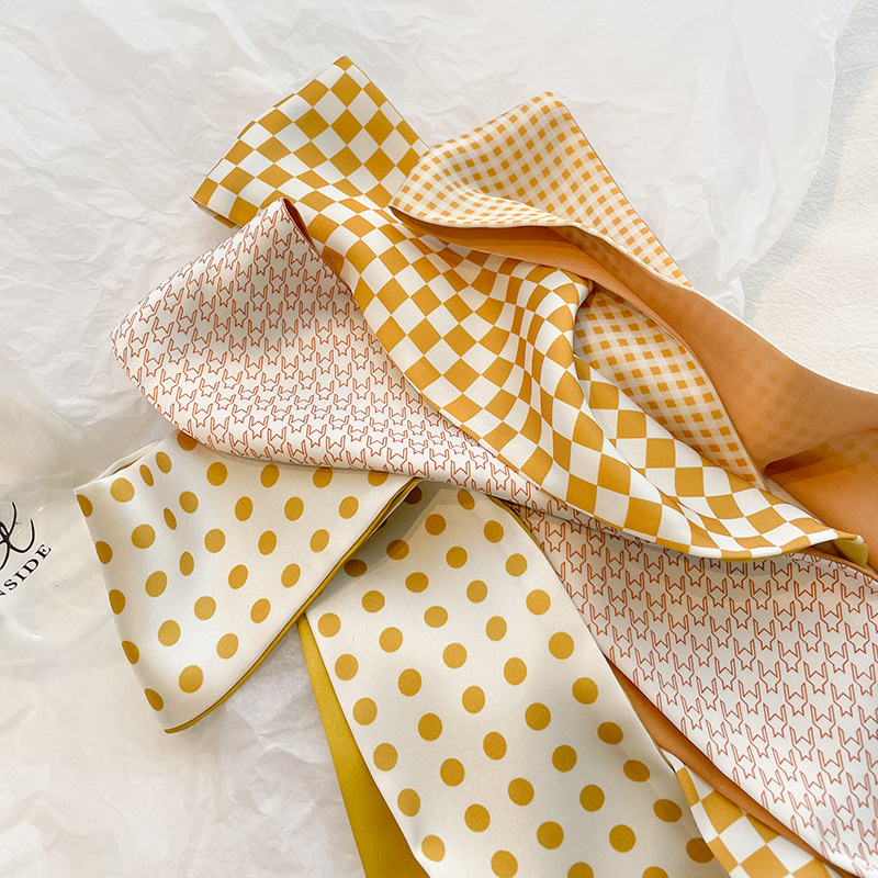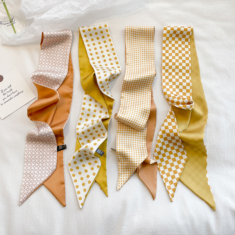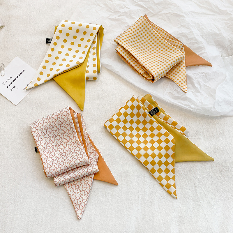 | nameOriginal | Japanese Style Simple Orange Style Checkerboard Artistic Double-layer Satin Small Scarf Neck Long Silk Scarf Women's Ribbon Tie Bag |