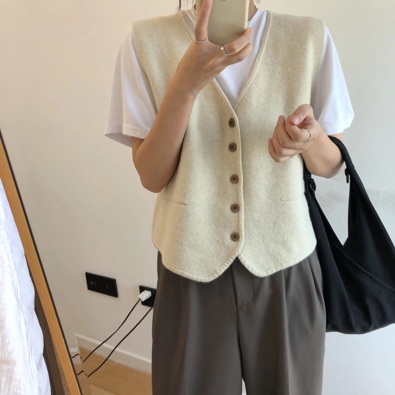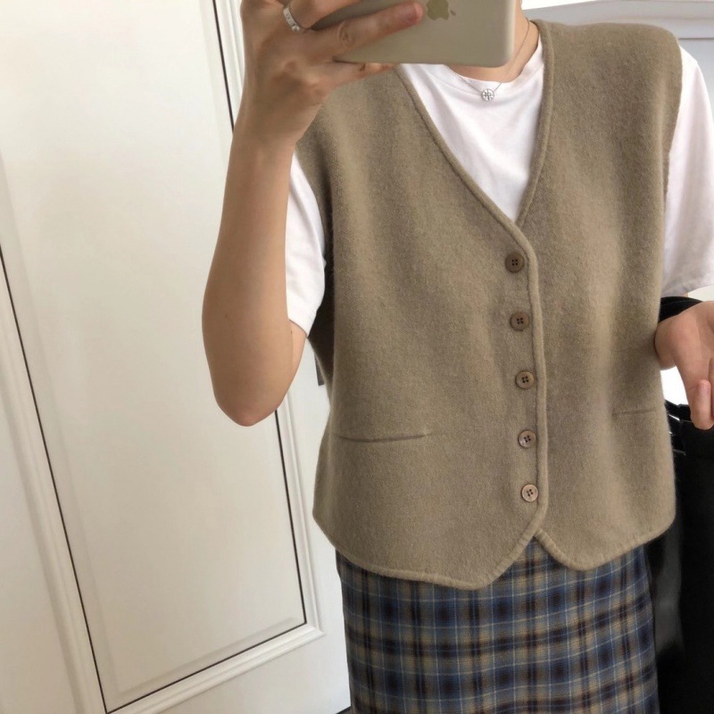 | nameOriginal | Japanese Style Simple Solid Color Stacked Knitted Vest Women's 2023 New Autumn All-match V-neck Wool Vest Waistcoat |