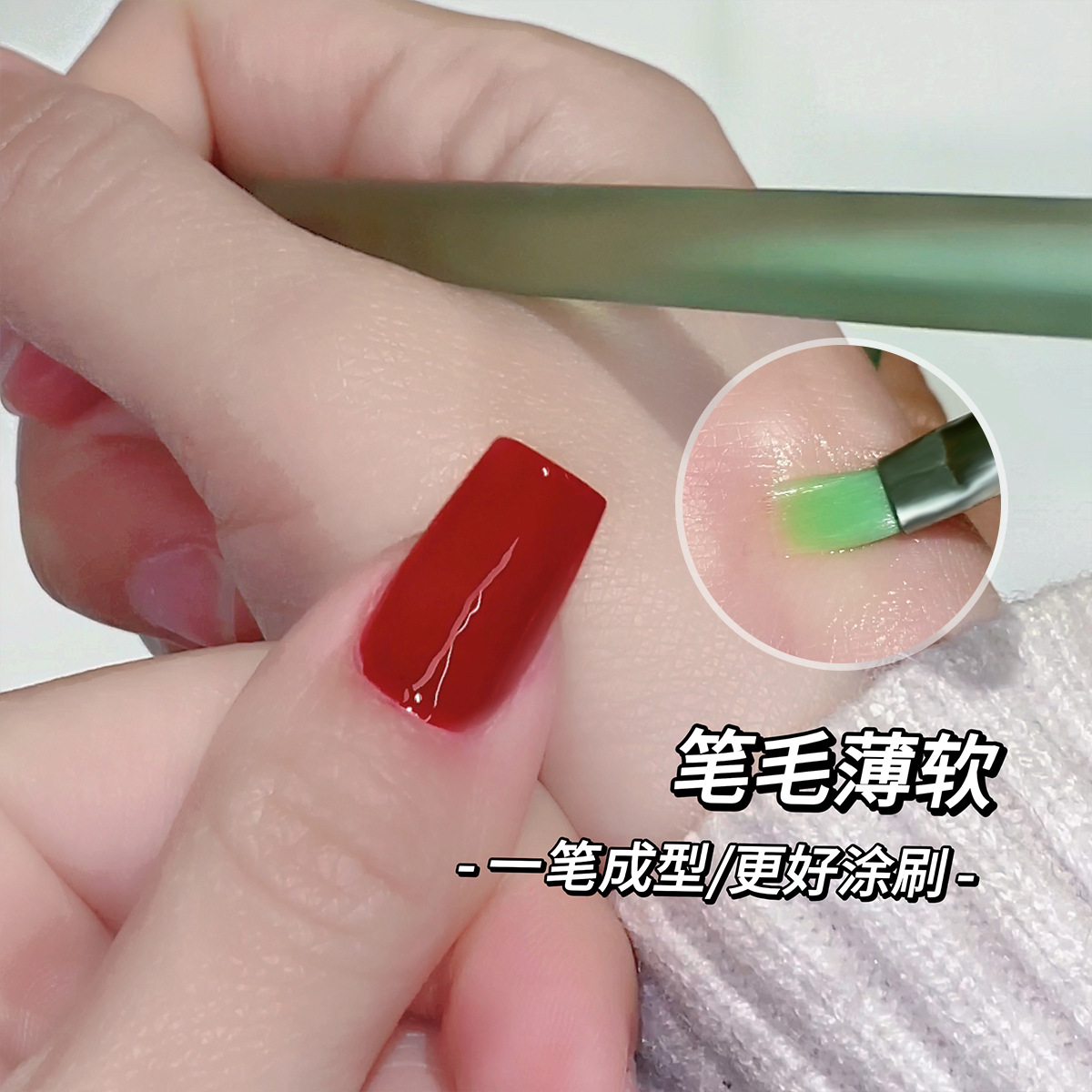 Japanese style small thin pen construction square round head flat mouth phototherapy pen glue powder green frosted pen rod with pen cover nail art pen