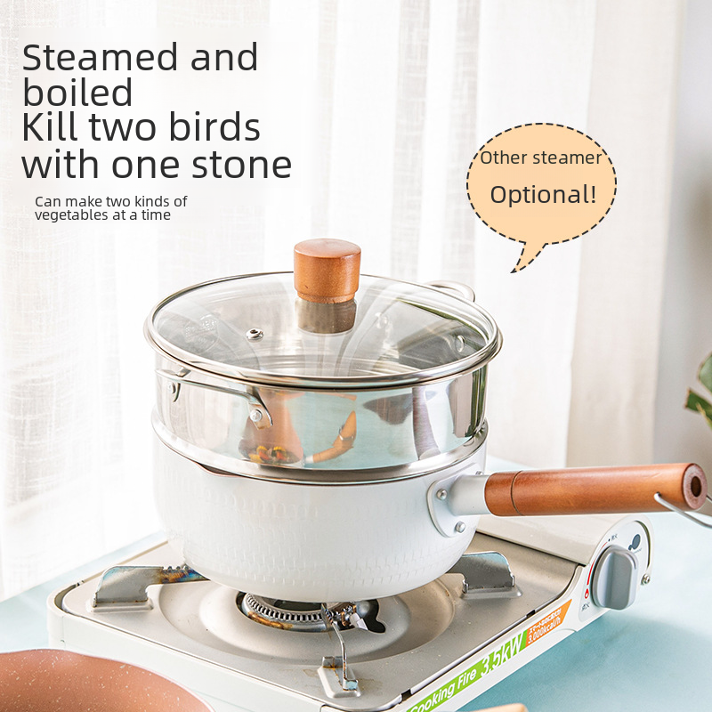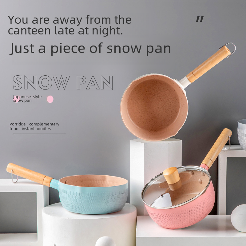Japanese-style Snow Flat Pot Maifan Stone Milk Pot Non-stick Pot Induction Cooker Soup Pot Baby Food Supplementary Pot Household Small Cooking Pot for Noodles