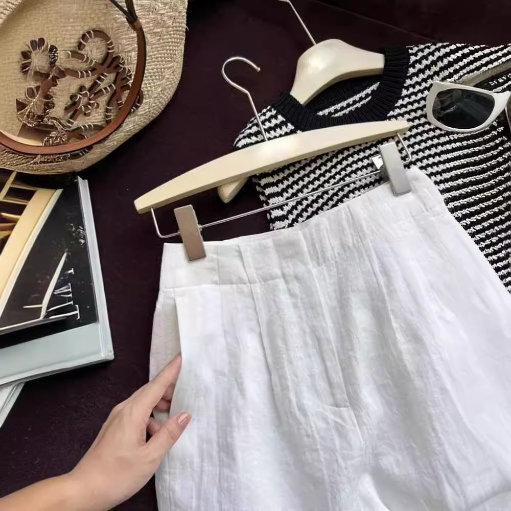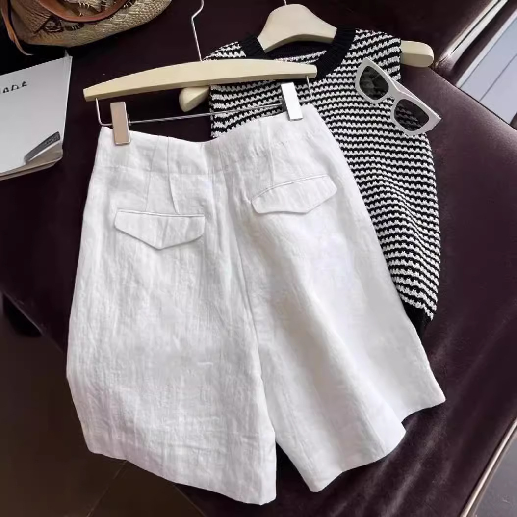 | nameOriginal | Japanese Style Vintage White Cotton and Linen Suit Shorts Women's Summer Thin High Waist A- line Linen Wide-leg Pants Five-point Pants |