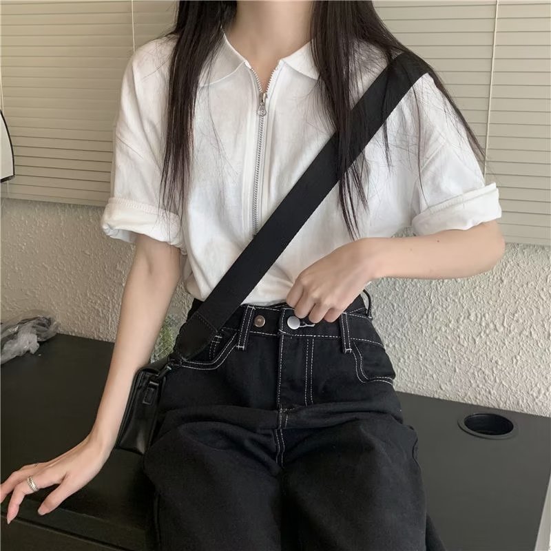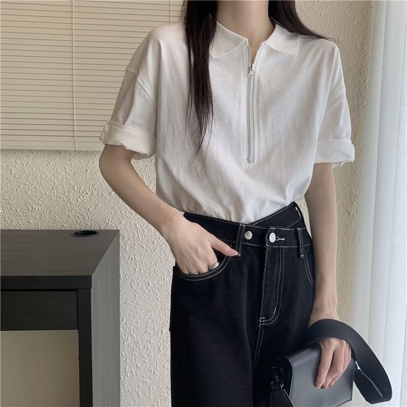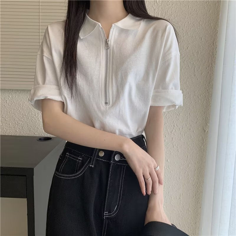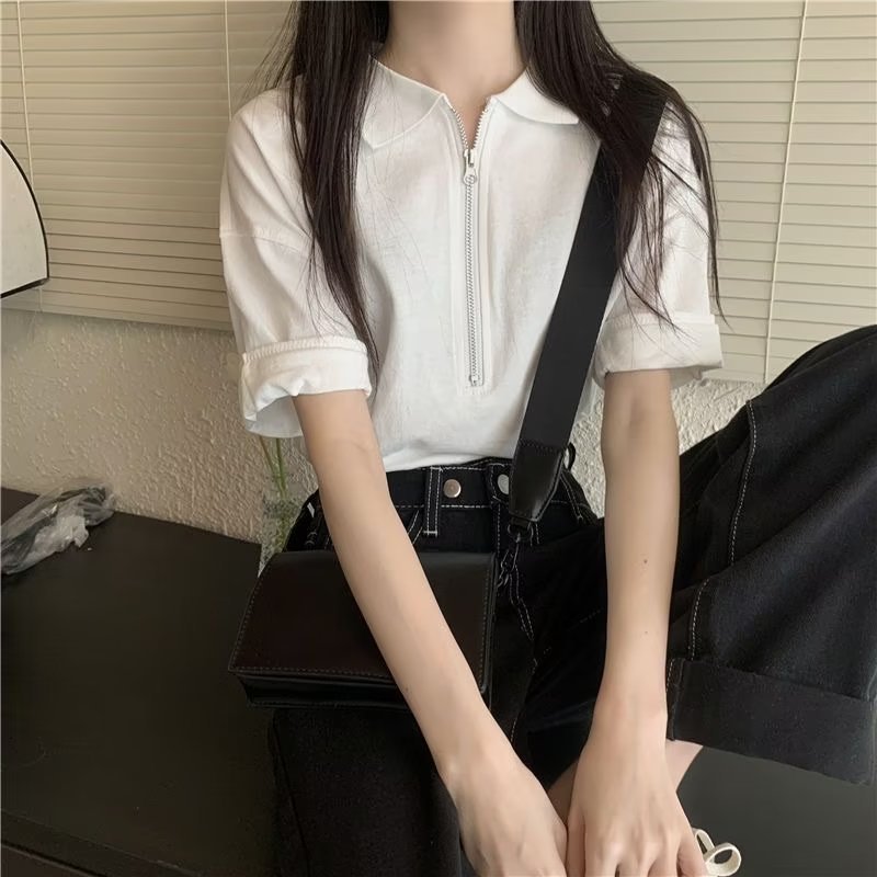 | nameOriginal | Japanese Style White T-Shirt Short-sleeved Women's Summer New Loose Slimming All-match Top Design Niche Zipper Polo Shirt |