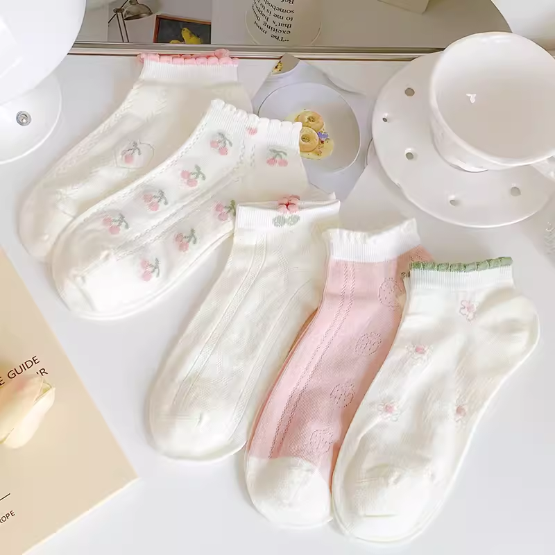 | nameOriginal | Japanese summer breathable pink cherry girl socks |