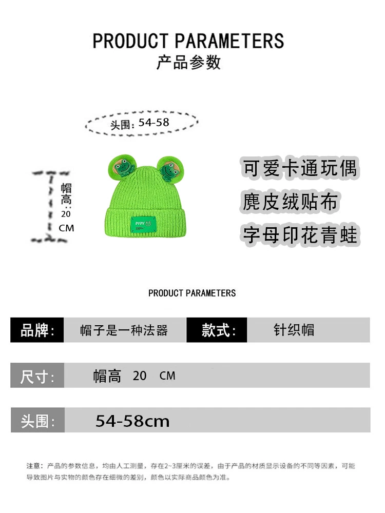 | nameOriginal | Japanese sweet and cute cartoon frog knitted woolen hat for women in autumn and winter Internet celebrity all-match warm ear protection parent-child hat |