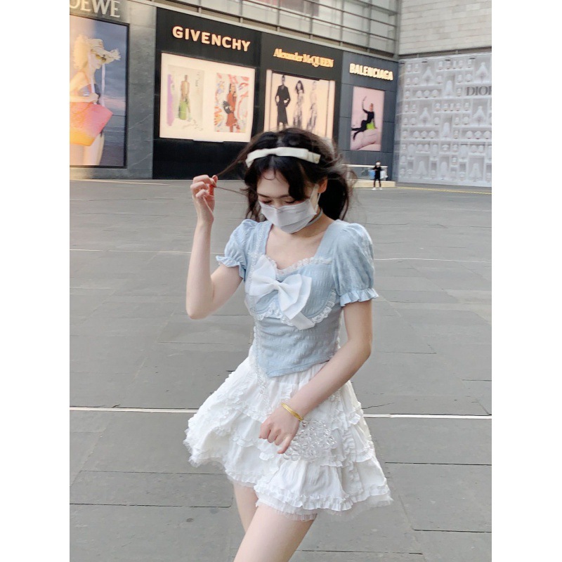 | nameOriginal | Japanese sweet fresh high waist slimming bubble wrinkle stitching cake skirt A- Line skirt for women Summer new |