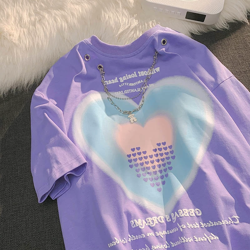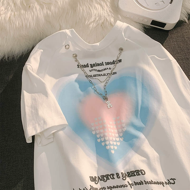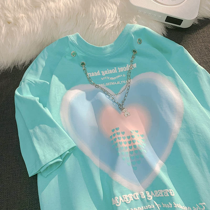 Japanese sweet love necklace short-sleeved T-shirt women's summer loose sweet and cool trendy brand couple wear half-sleeved top ins trend