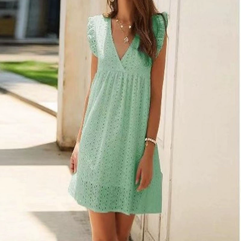 Japanese sweet summer V-neck candy-colored lace jacquard hollow sleeveless dress baby dress with lining DRESS