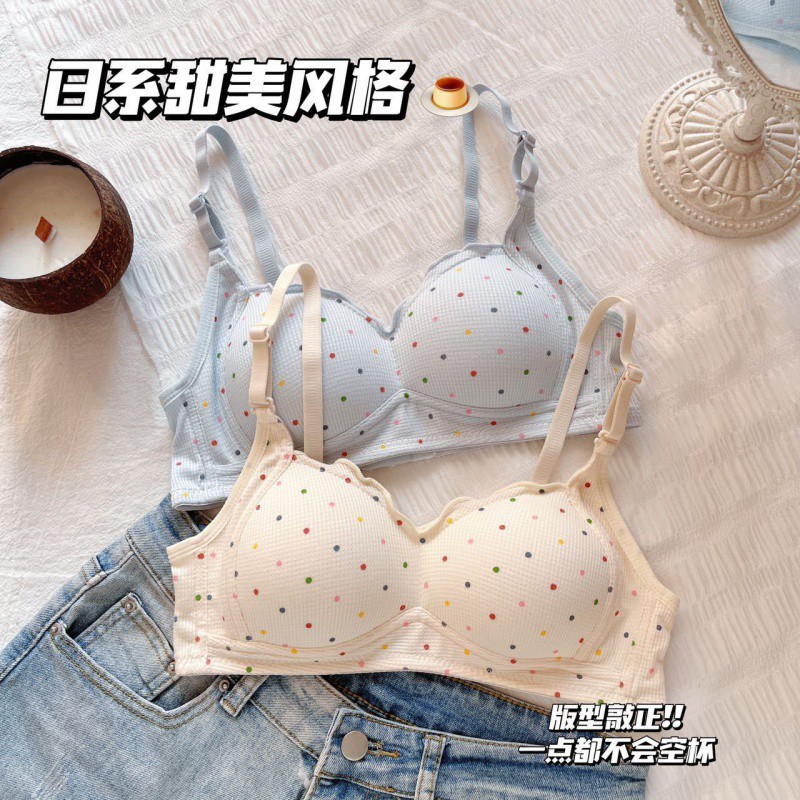| nameOriginal | Japanese Sweet Underwear Women's Small Chest Gathered Senior high school Student Girl's New Thin Traceless Wave Dot Bra |