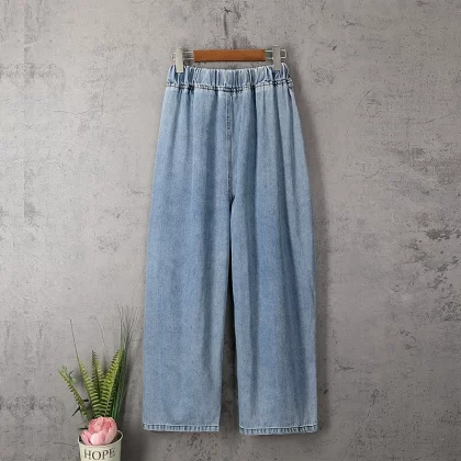 Japanese thin jeans for women 2024 summer new sweet lace-up elastic waist pure cotton nine-point pants carrot pants