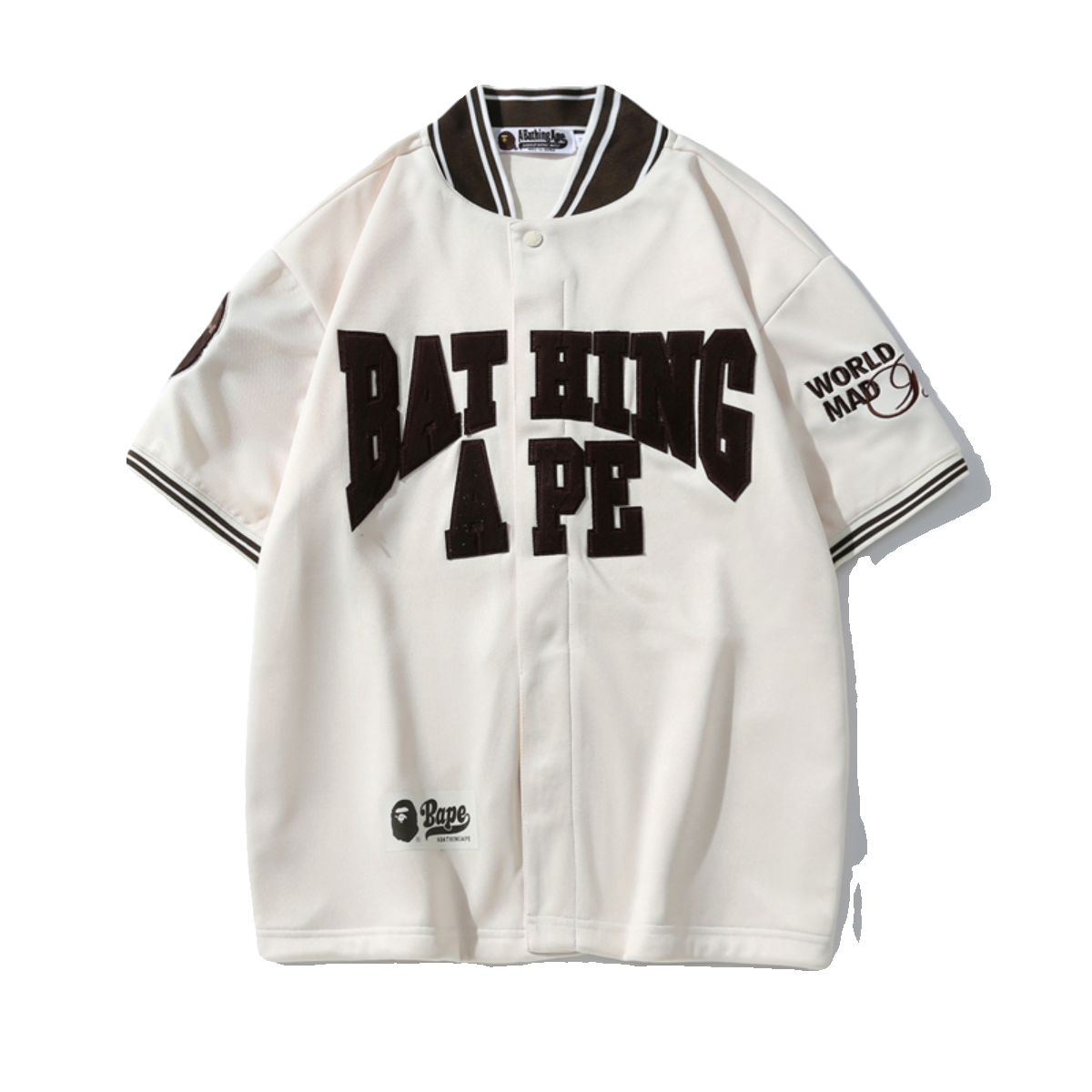 | nameOriginal | Japanese trendy brand APE letter German velvet embroidered baseball shirt cardigan short-sleeved ape man men's and women's baseball shirt half-sleeved shirt |