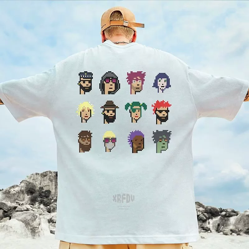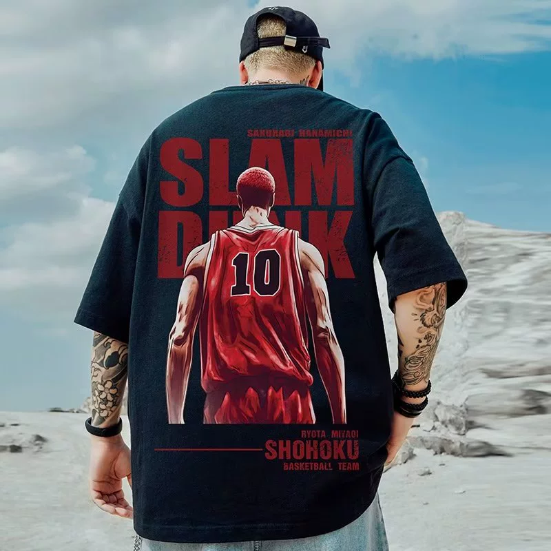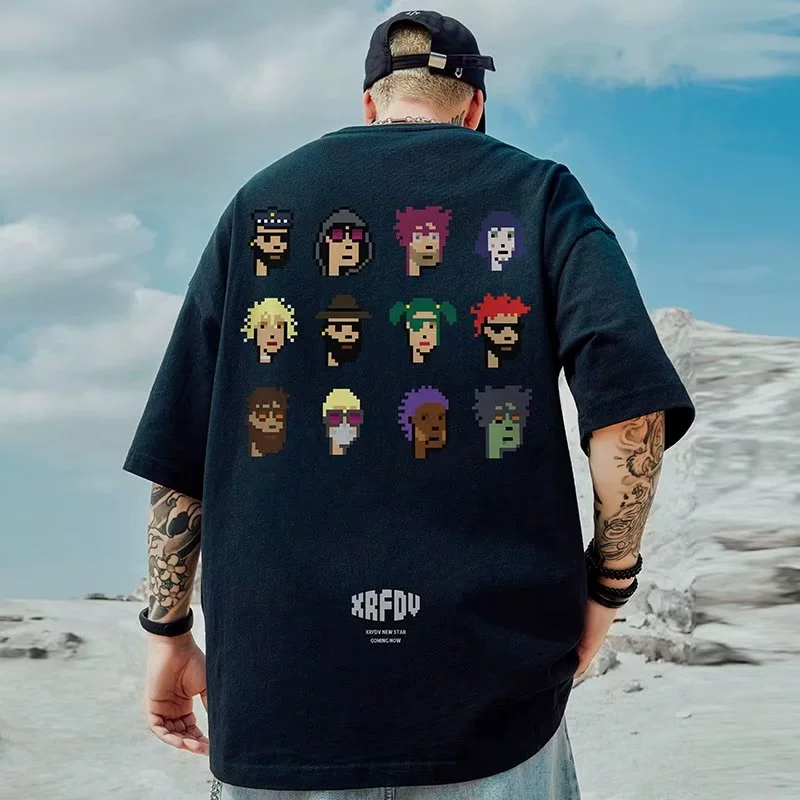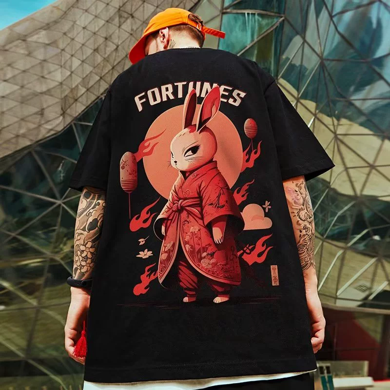 Japanese tide brand loose T -shirt Fat guy Men’s loose plus large size short -sleeved tide cartoon sports half -sleeved top