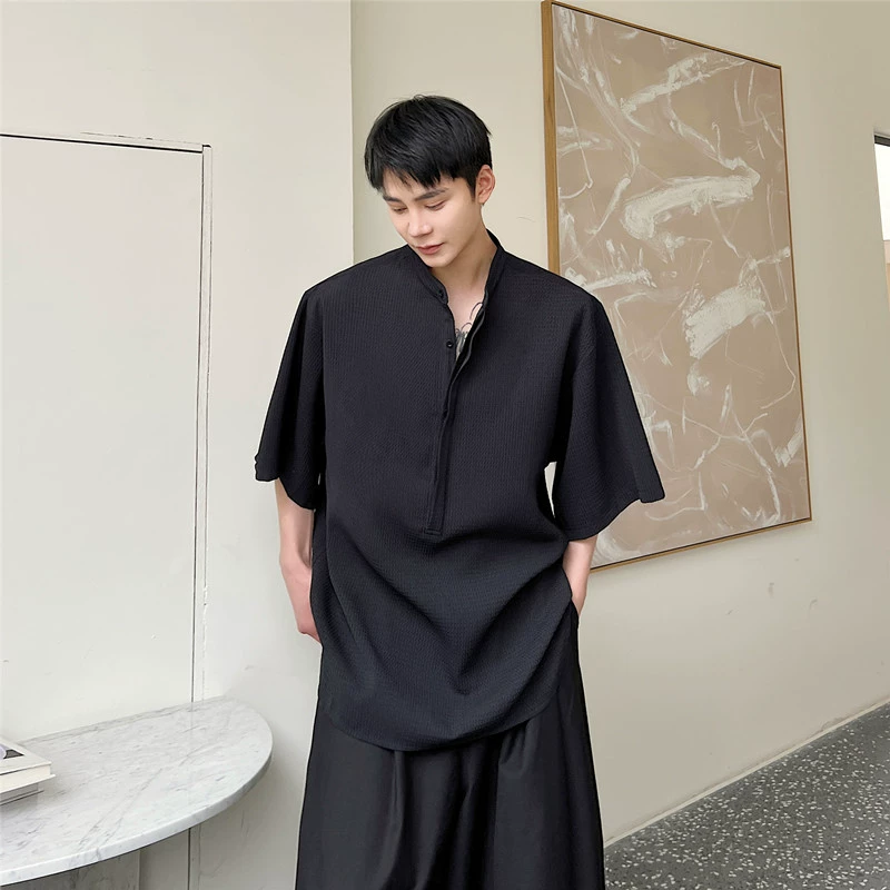 | nameOriginal | Japanese Yamamoto dark style stand collar silhouette short-sleeved shirt |