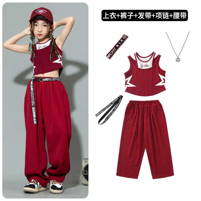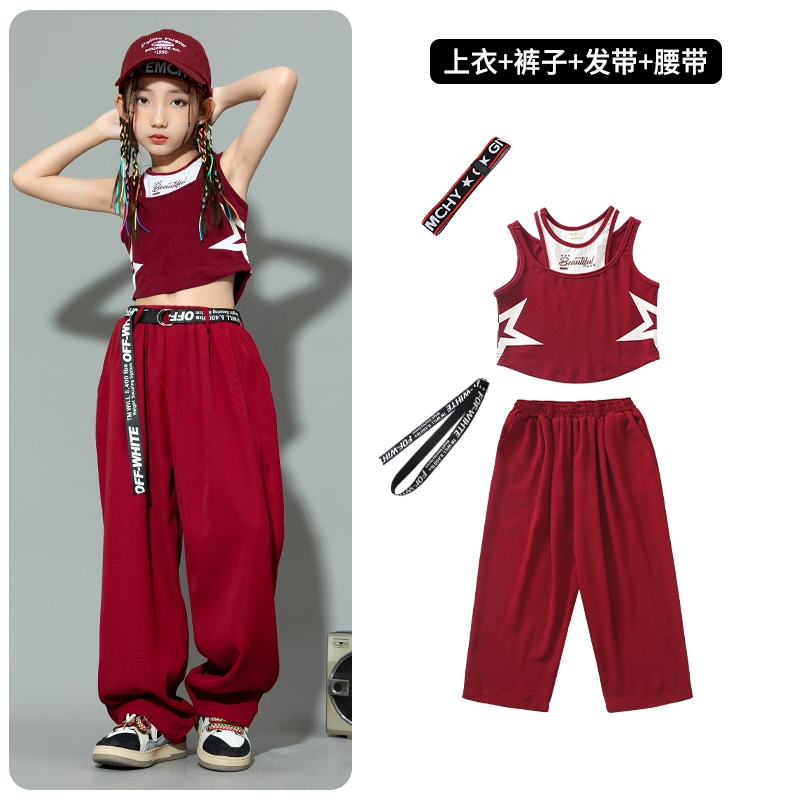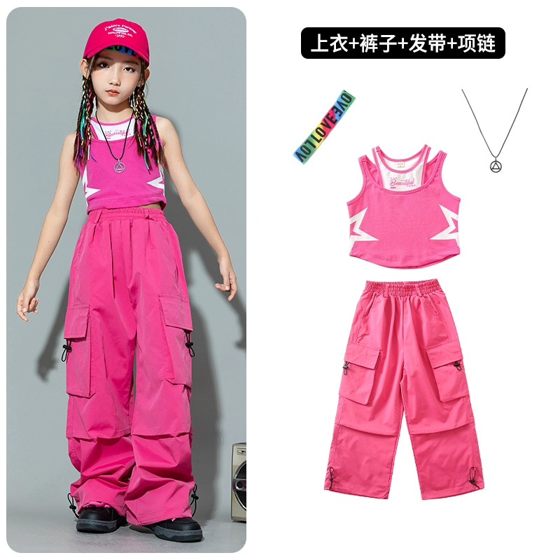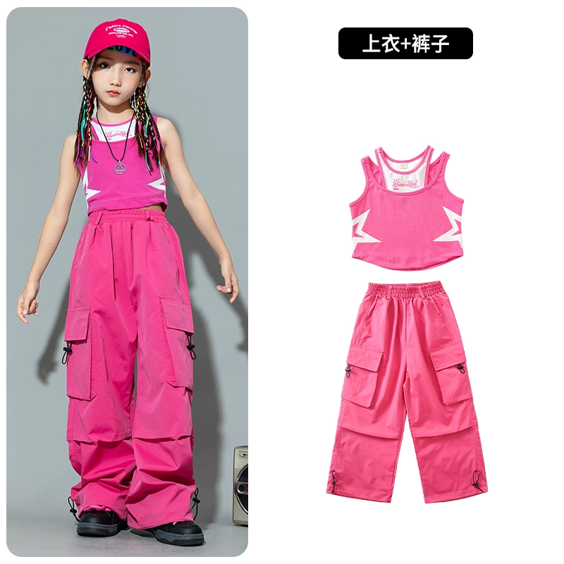 Jazz dance fashion girl summer suit little girl dopamine vest work pants trendy clothes children street dance hip hop