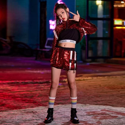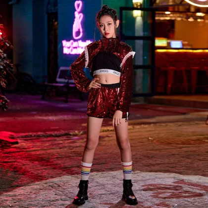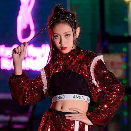 Jazz dance runway girl's navel-baring model costume