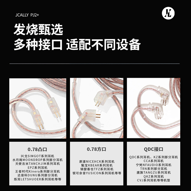 JCALLY High Purity Oxygen Free Copper Double Parallel Line 0.75mm Gold Plated Pin HIFI Headset Original for KZ QDC