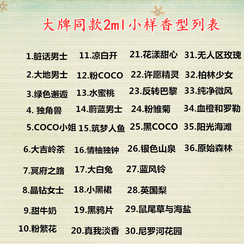 JEAN MISS Brand card perfume sample 2ml men's and women's perfume test sample test tube a generation of hair