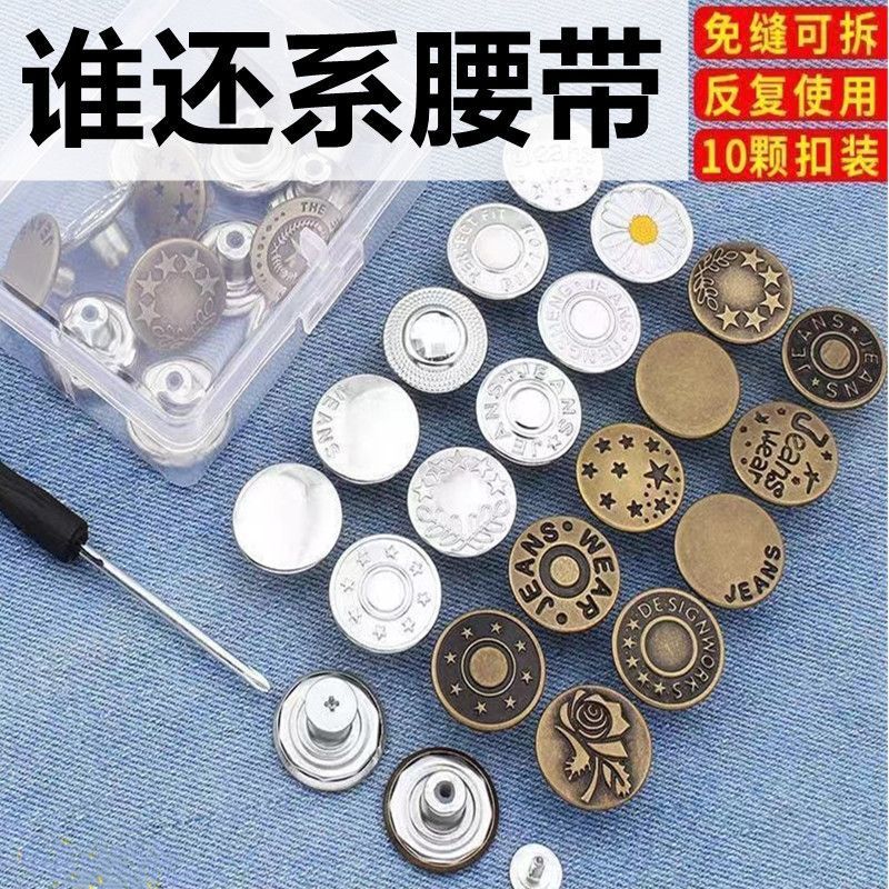Jeans Button Women’s Seam-Free Nail-Free Detachable Adjusting All-Match Pants Button Flat Bottom Waistline Tight Button