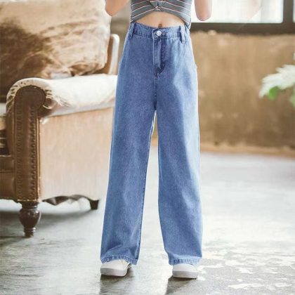 Jeans Girls’ 2022 New Girls’ Wide Leg Pants High Waist Loose Mid-child Pants Children’s Straight Leg Pants Casual