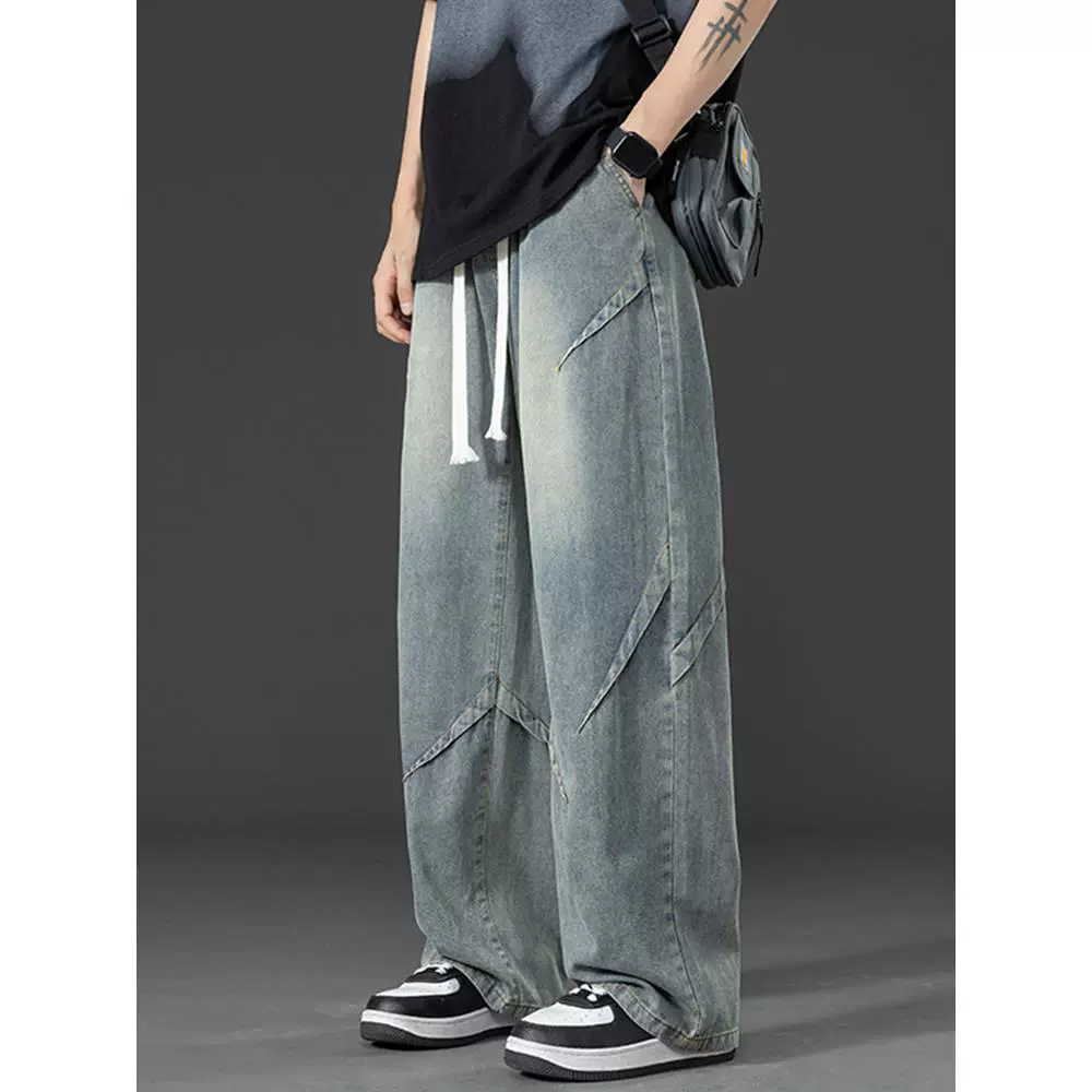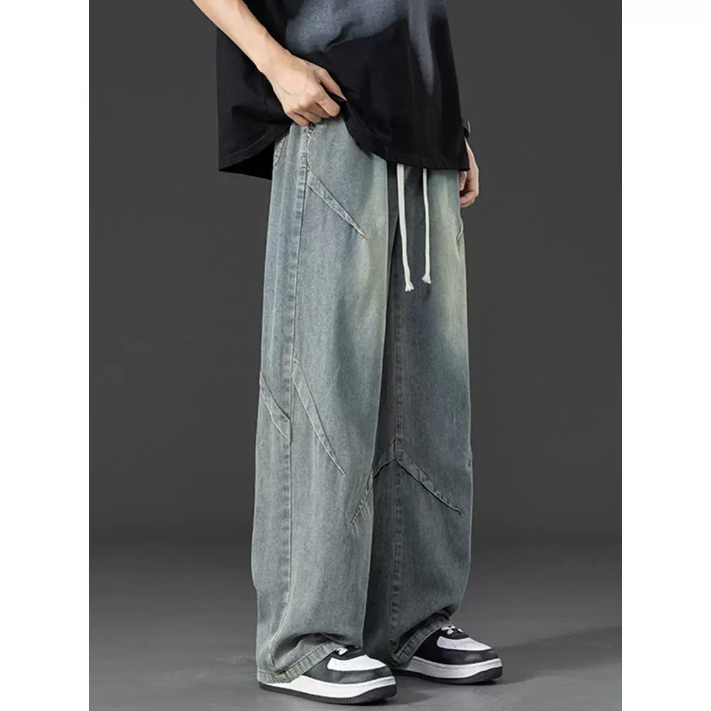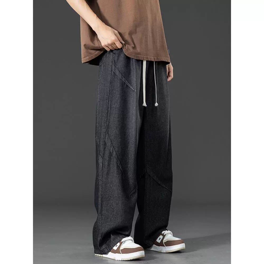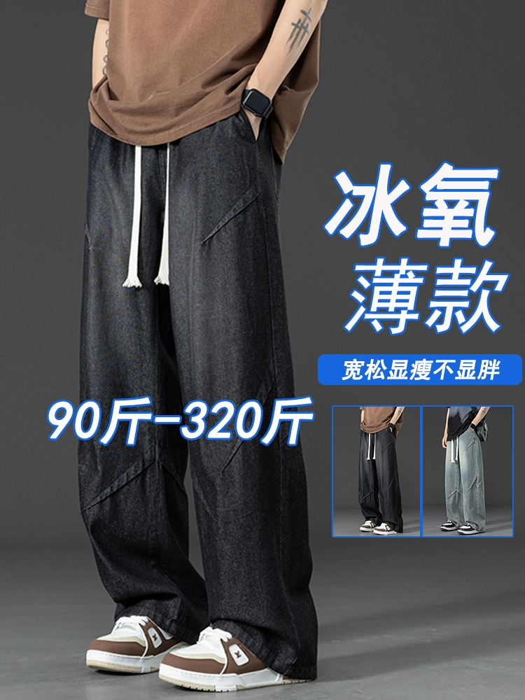 Jeans men’s summer thin ice silk loose plus fat large size drape trendy high street wide leg straight casual pants
