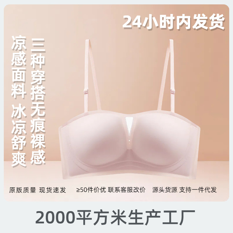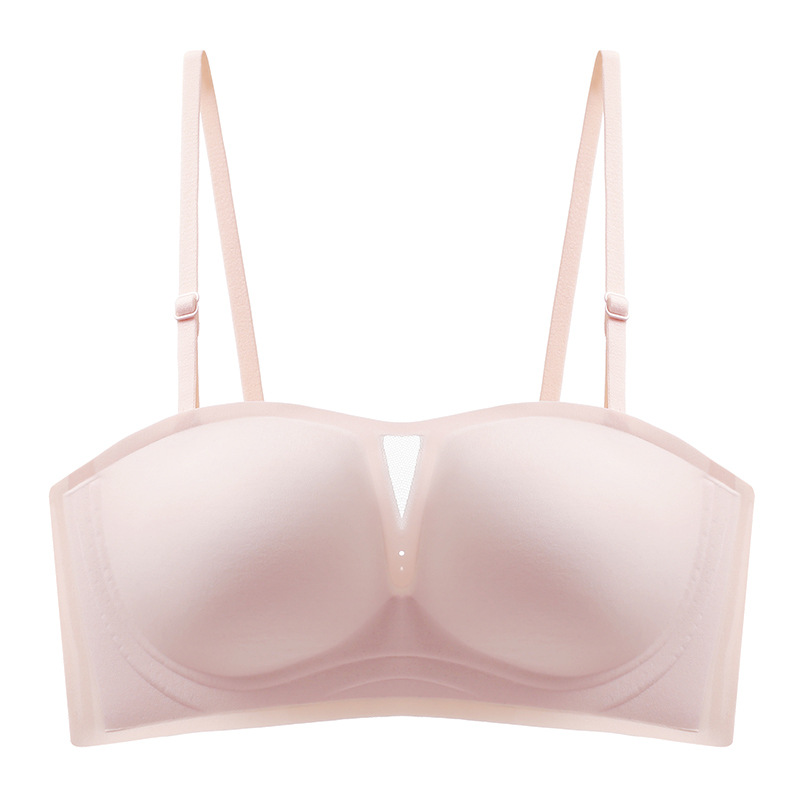 Jelly Strapless Non-slip Bra Integrated Fixed Cup Comfortable Breathable Invisible Ultra-thin Tube-length Underwear Women’s Rimless Underwear