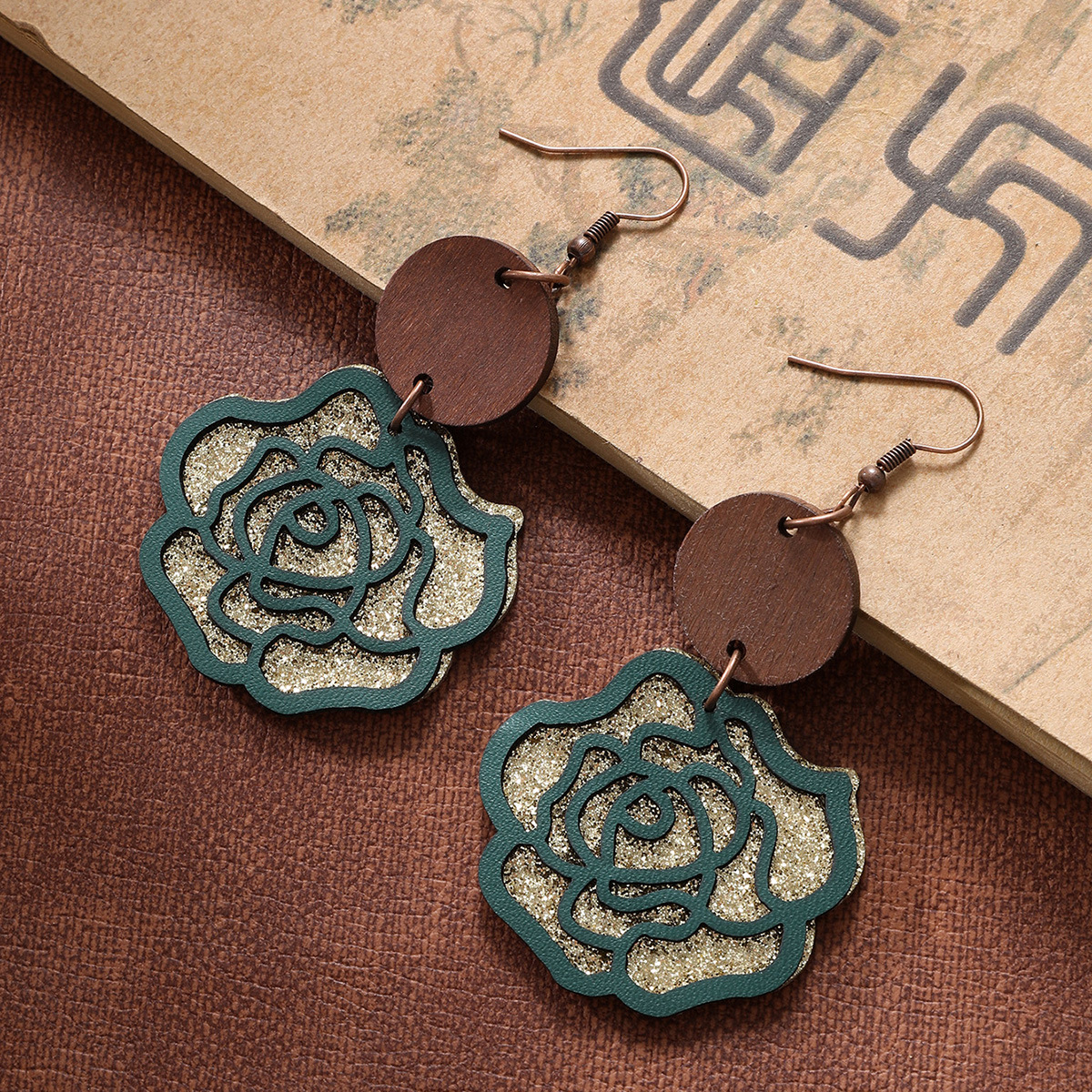 | nameOriginal | Jewelry accessories rose vintage earrings double-layer leather wood-chip earrings Women's European and American cross-border Amazon |
