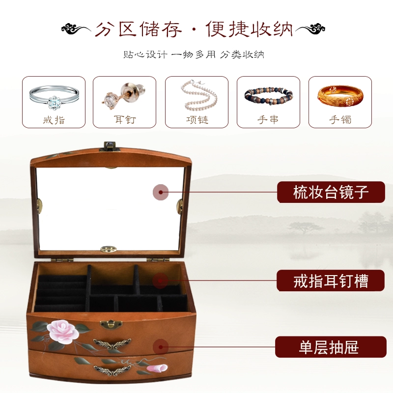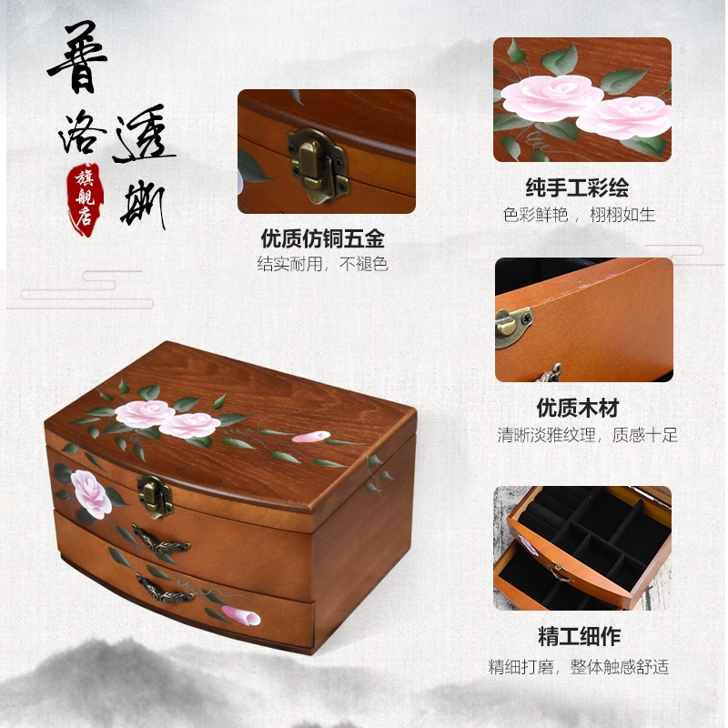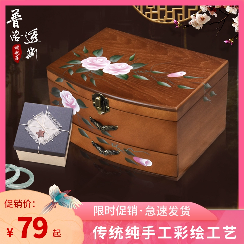 Jewelry box European solid wood jewelry box retro storage box princess earring box jewelry box birthday wedding gift