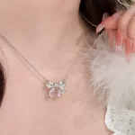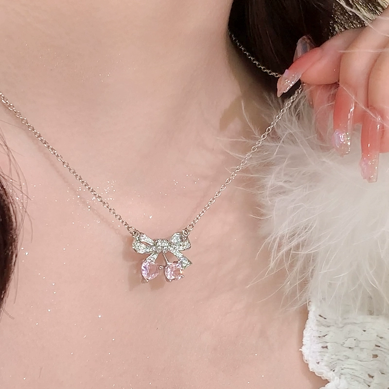 | nameOriginal | Jewelry cherry pink diamond light luxury bow silver necklace for women |