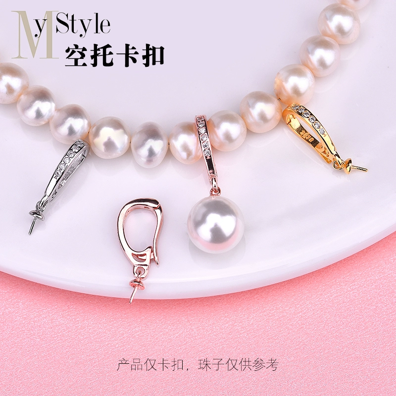 Jewelry diy accessories material s925 sterling silver inlaid zircon buckle with bead support empty support pendant buckle