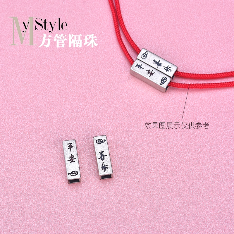 | nameOriginal | Jewelry diy accessories s925 sterling silver bestie couple peace and joy auspicious clouds long square tube beads hand rope beads |