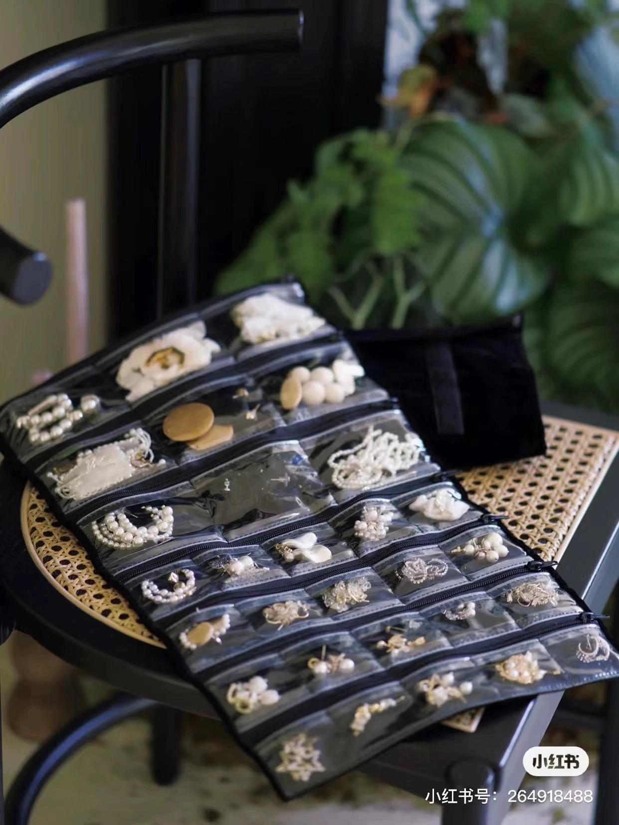 | nameOriginal | Jewelry dust-proof storage bag jade brand plaid transparent bag portable business trip velvet roll necklace bracelet Xiaohongshu |