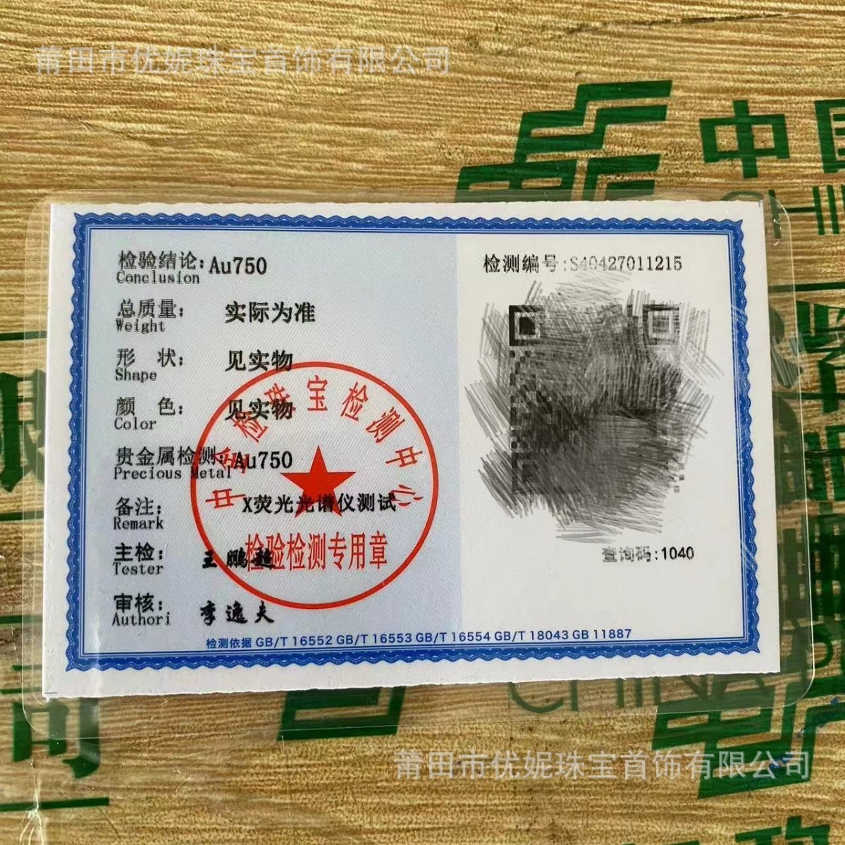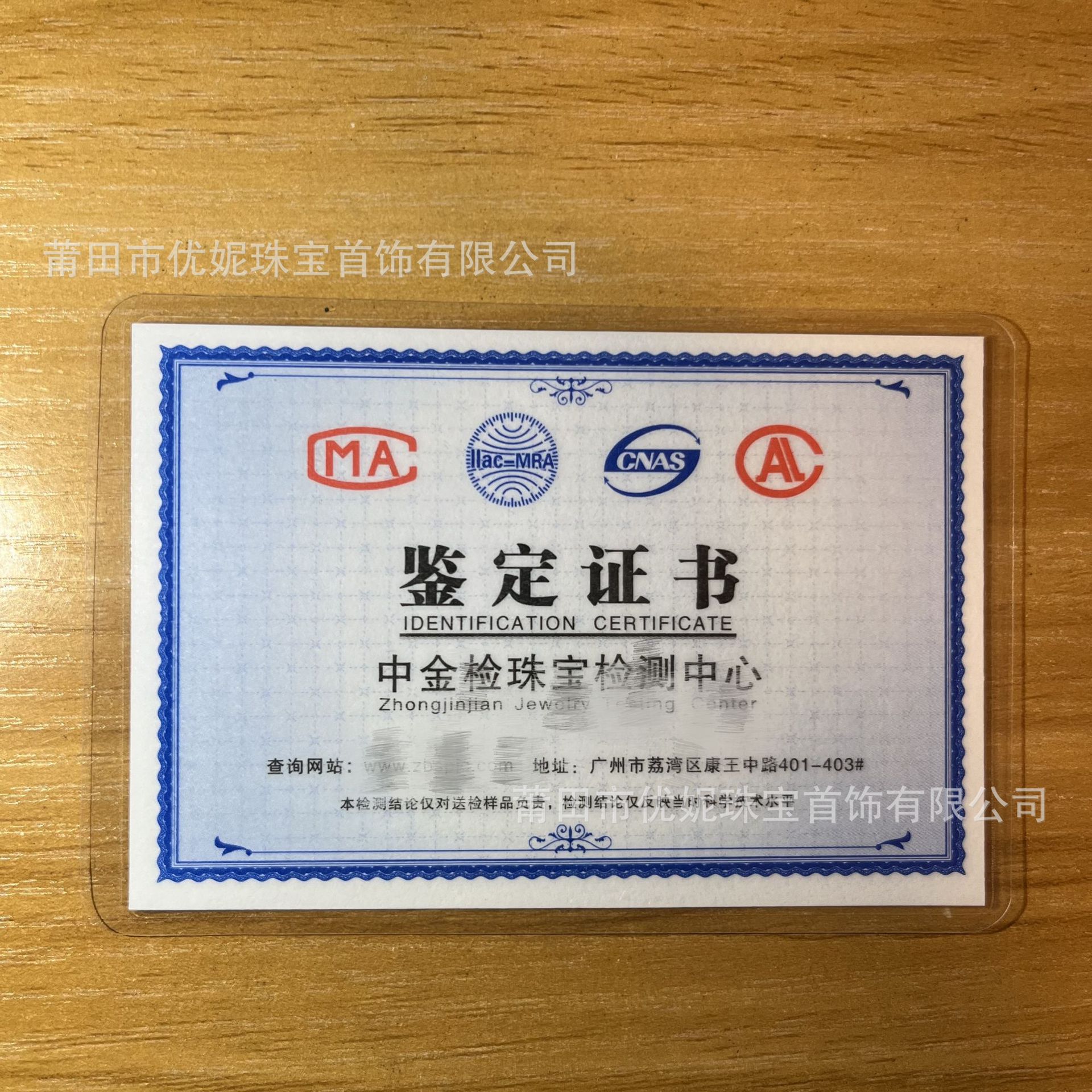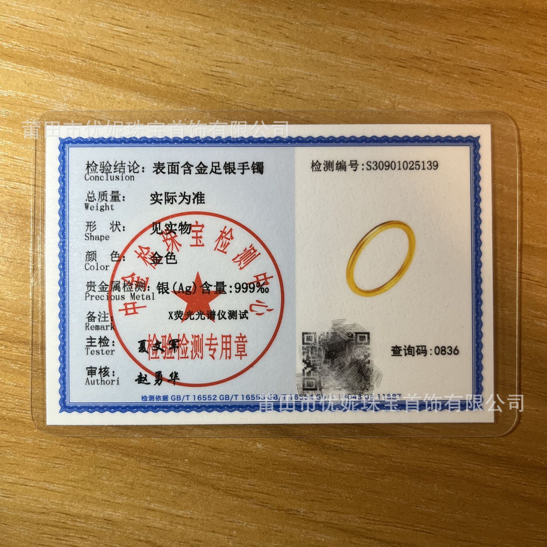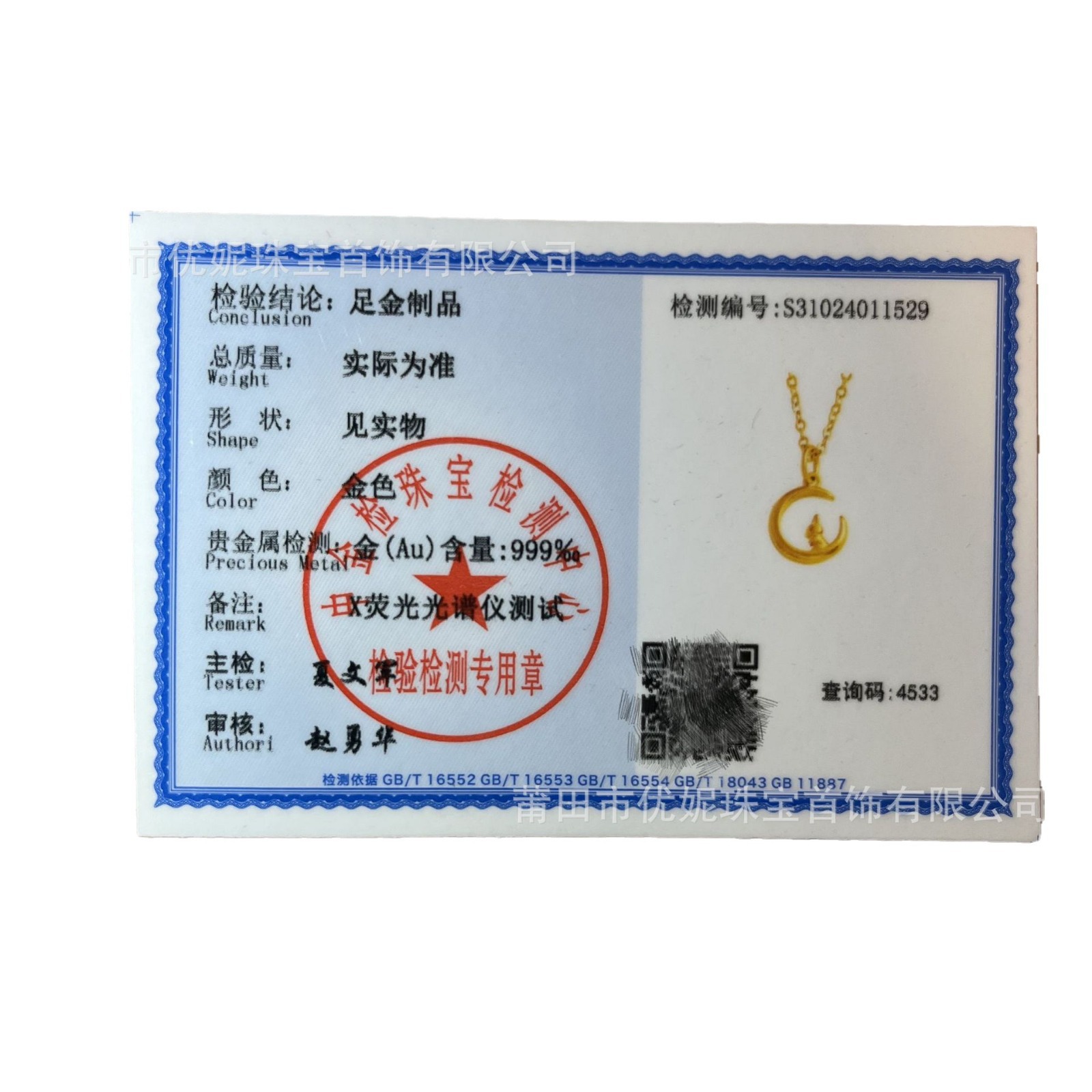 Jewelry First Jewelry Inspection Certificate Making Sterling Silver Gold Precious Metal Identification Certificate Formal Organization Quality Inspection