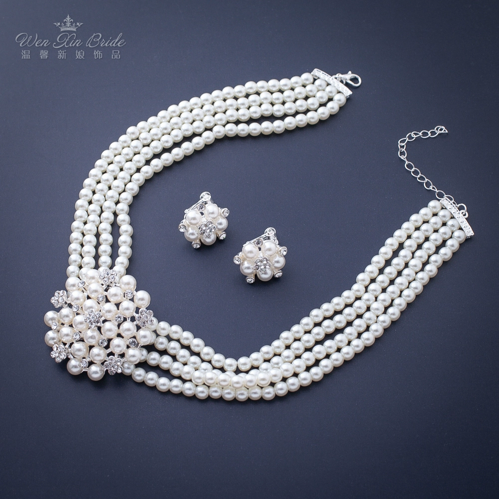 | nameOriginal | Jewelry four row necklace stage wedding dress pearls |