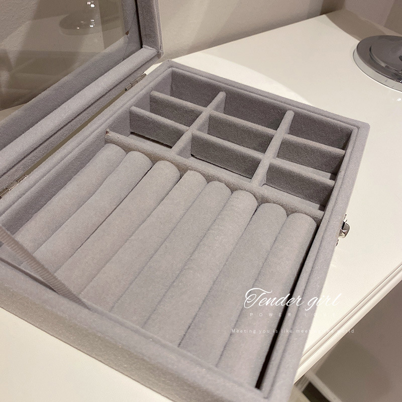 Jewelry Jewelry Box Simple Gray Internet Red Style Earrings Storage Box Design Sense Large Capacity Portable Storage Box