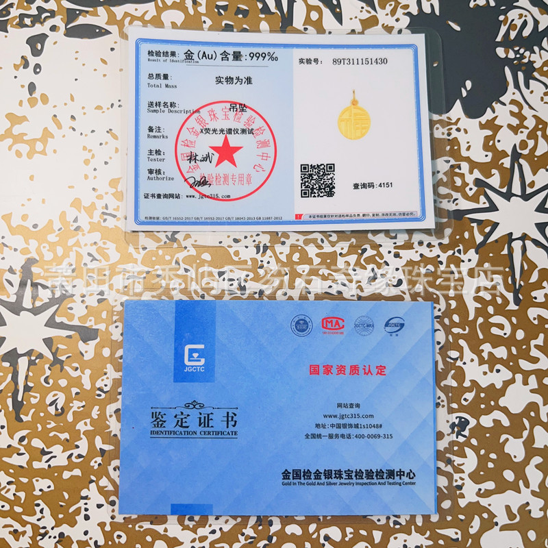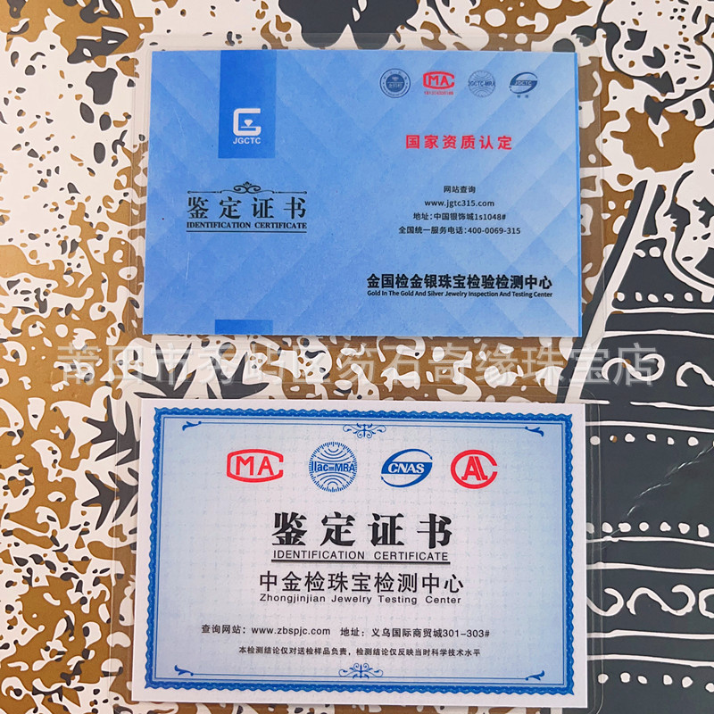 | nameOriginal | Jewelry jewelry inspection certificate precious metal jade sterling silver gold identification certificate formal organization one thing one certificate |