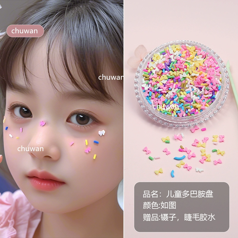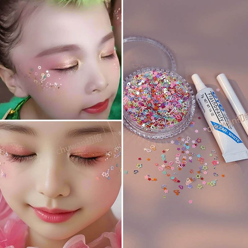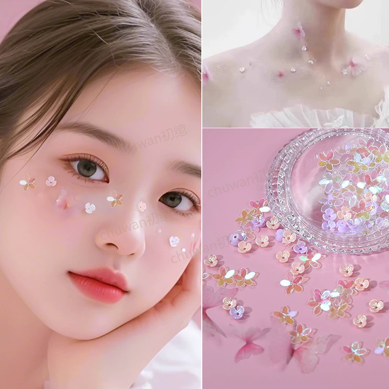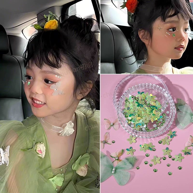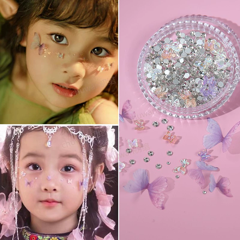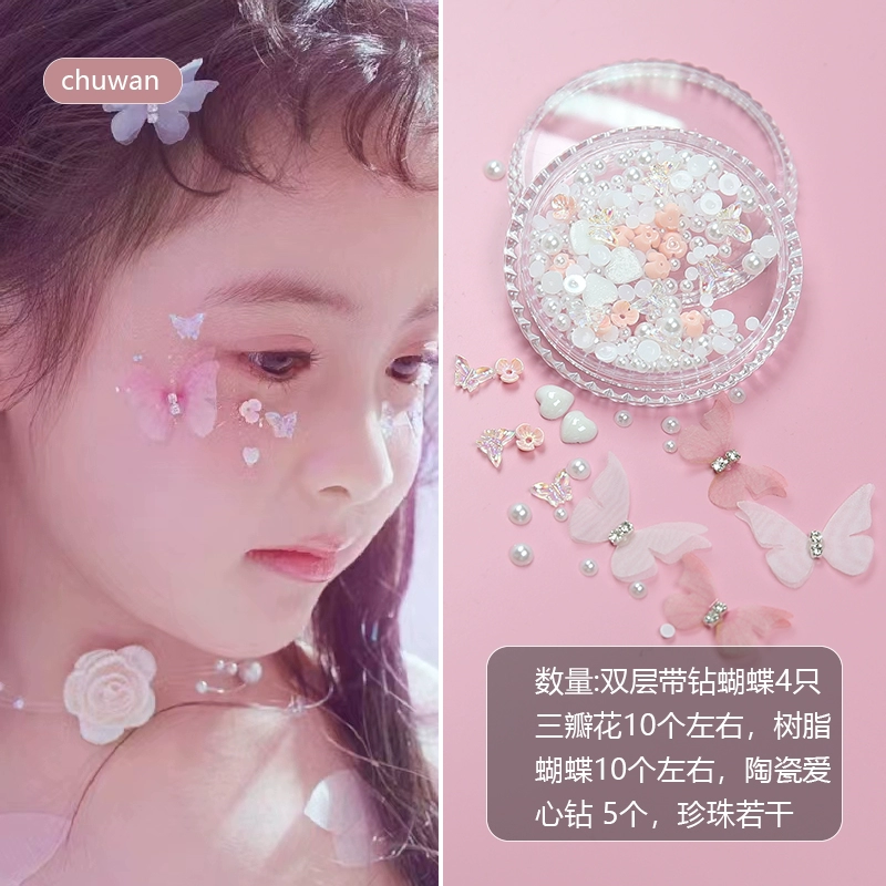 | nameOriginal | Jewelry on face, bright diamonds, eye makeup for stage performance |