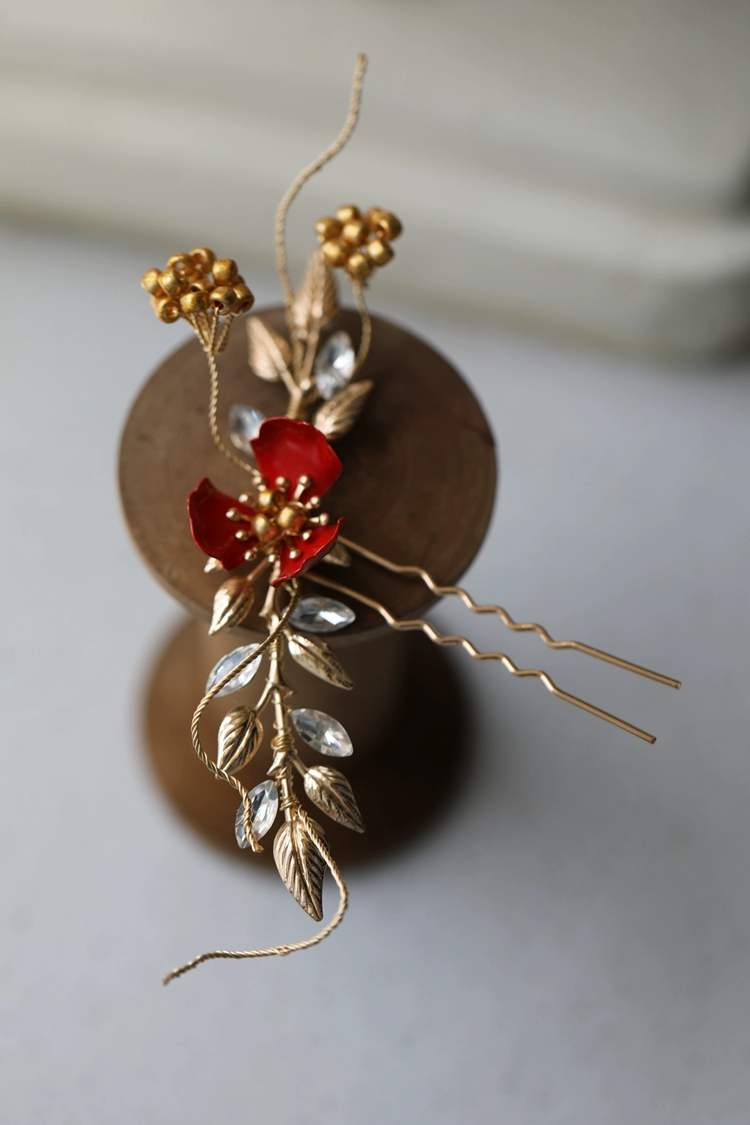 | nameOriginal | Jewelry red vintage style clip-on bridal beaded Hanfu |