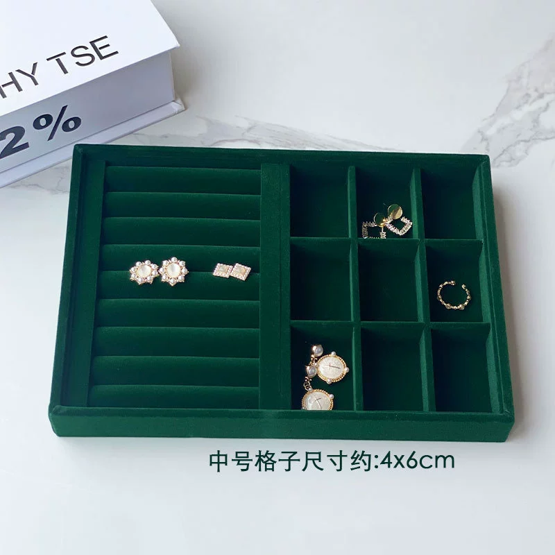 | nameOriginal | Jewelry storage box dark green velvet plaid jewelry necklace ring earrings earrings bracelet storage tray display |