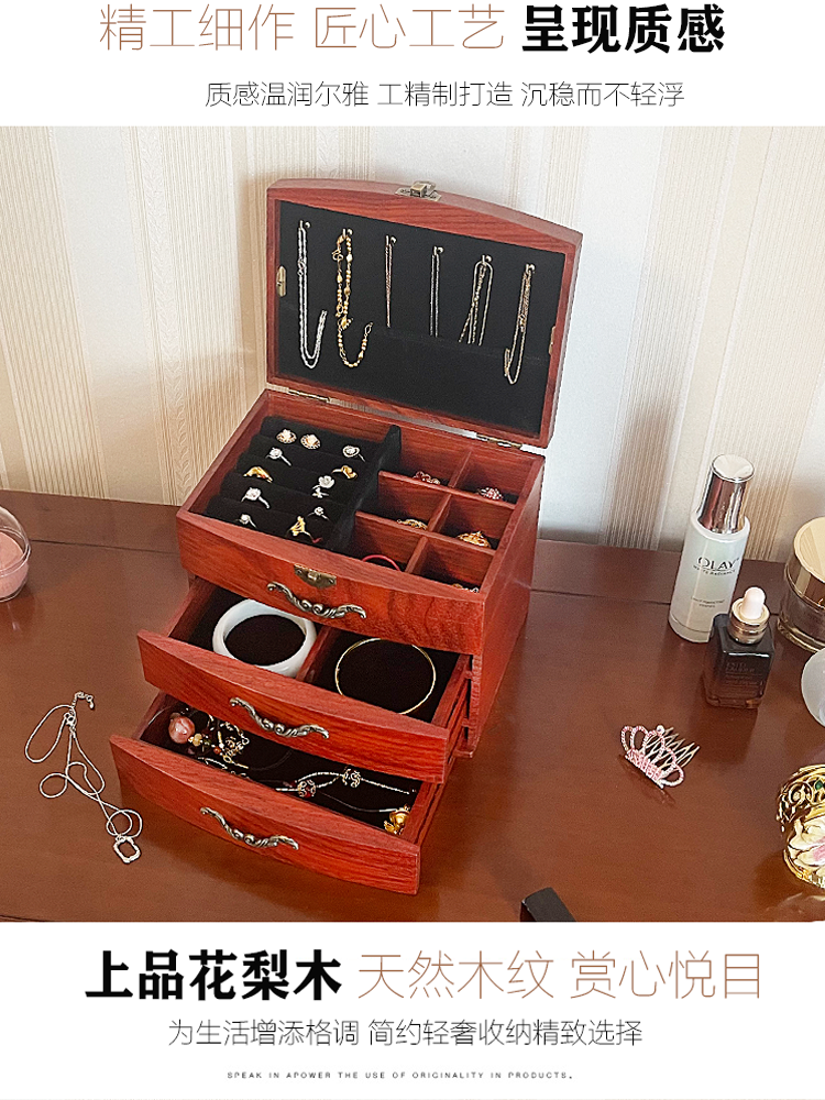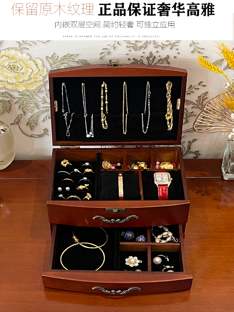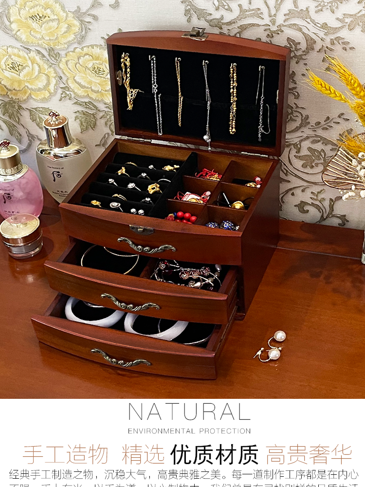 | nameOriginal | Jewelry storage box, exquisite solid wood hand jewelry box, retro ring necklace, earring box, high-end jewelry storage box |