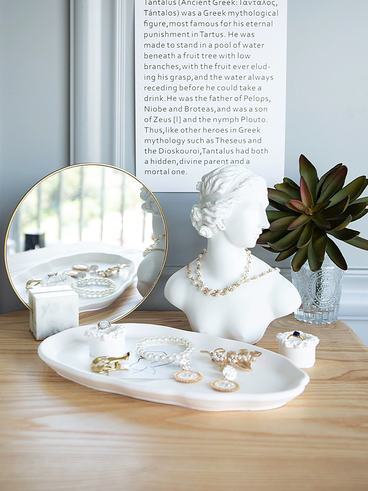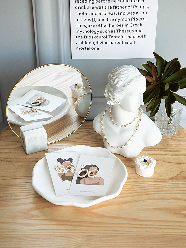 | nameOriginal | Jewelry storage tray, plaster jewelry tray, dressing table, makeup mirror, necklace holder, ring holder, photography props and decorations |