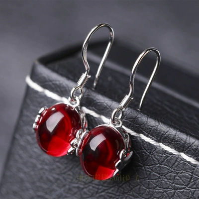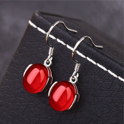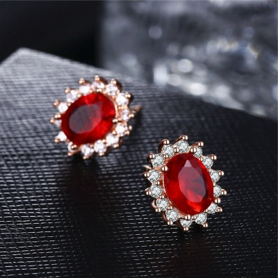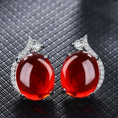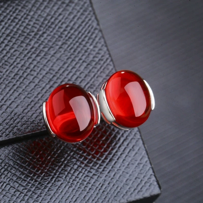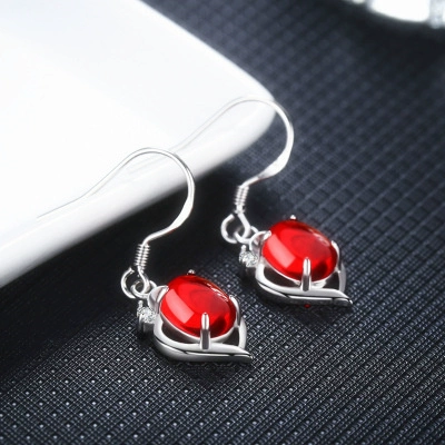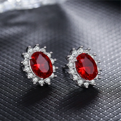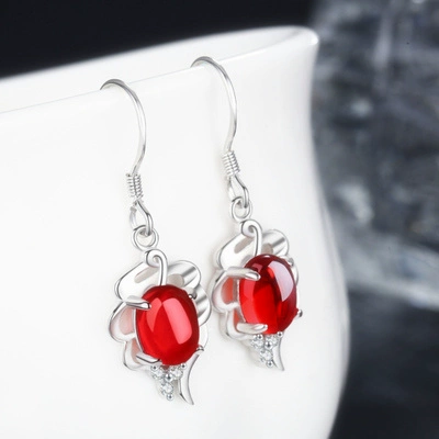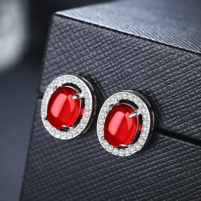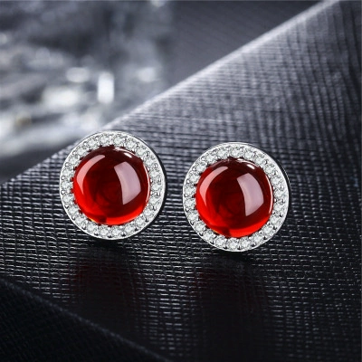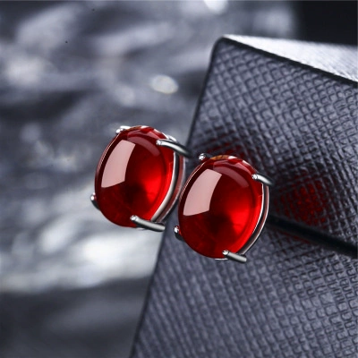 Jewelry stud earrings for women, simple gemstones for mother, red corundum