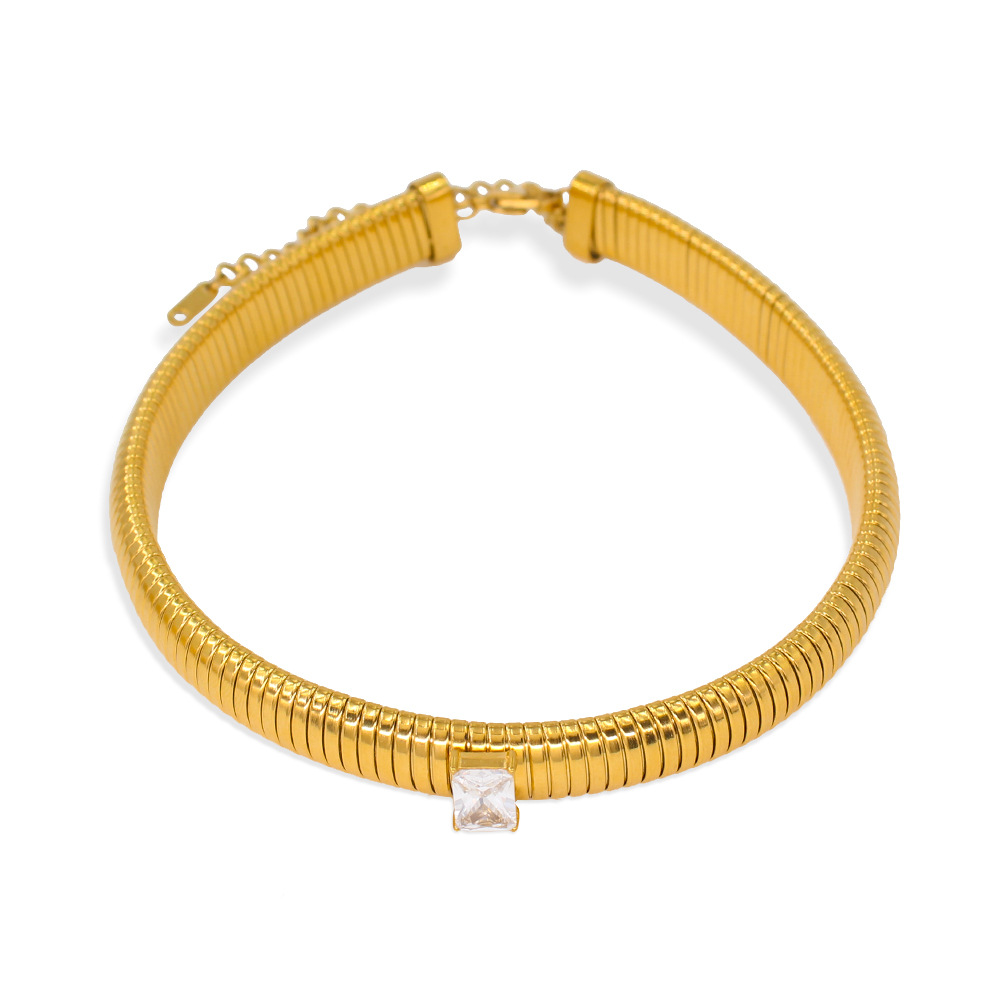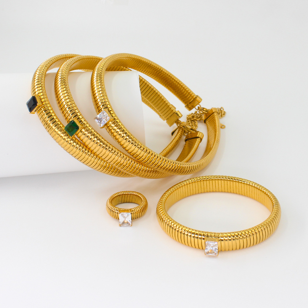 | nameOriginal | Jewelry suit French retro exaggerated design striped texture thick ring bracelet collar titanium steel zircon jewelry |