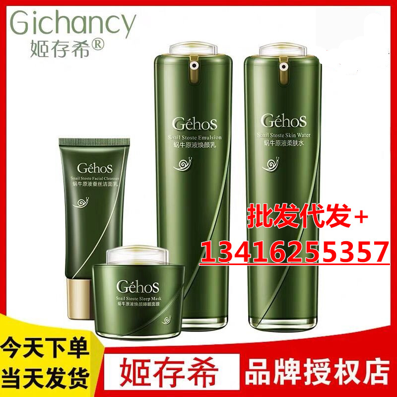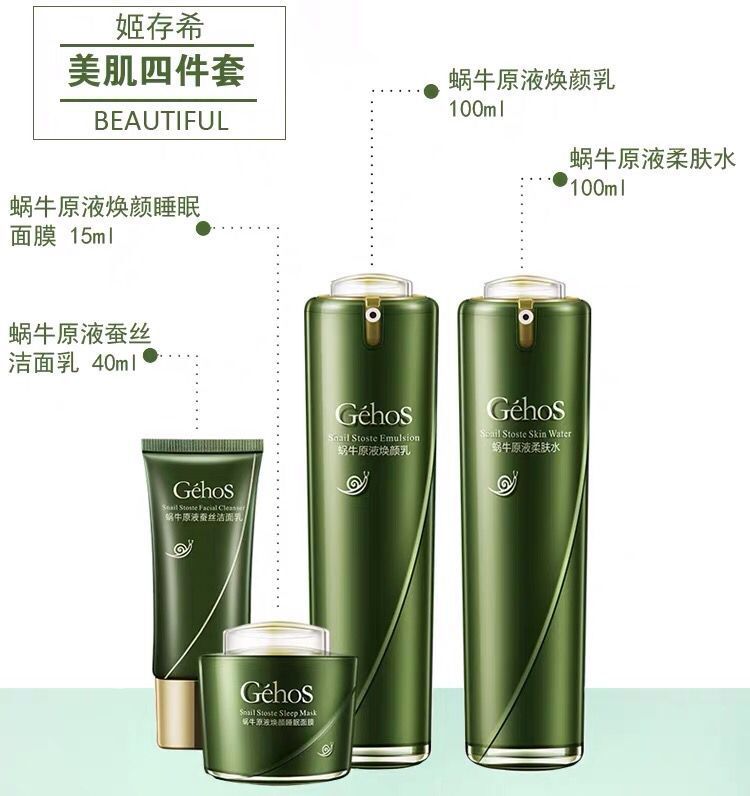 | nameOriginal | Ji Cunxi Meiji Four-piece Set Snail Liquid Toner Brightening Cream Plain Cream Vitality Cream Brilliant Set Genuine |