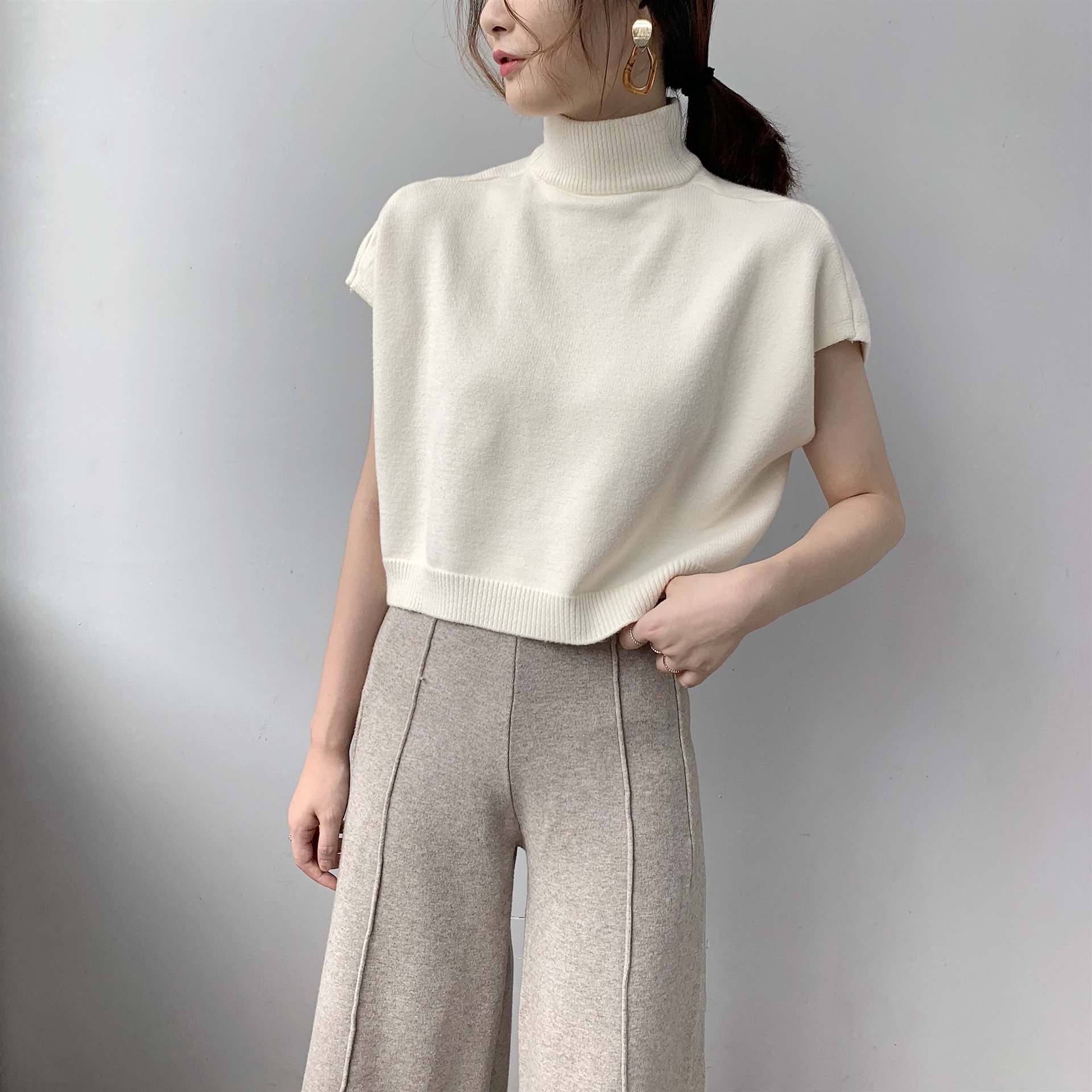 Jia Weave Milk Sweet Sweater Vest 2023 New Reduced Neck Small Wear High Neck Knitted Pullover 8T8869