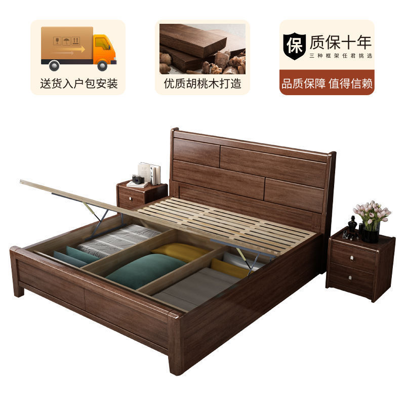 | nameOriginal | Jiadong South American black walnut 1.5 m double bed home bed solid wood solid wood air pressure high box bed bedroom 1 |