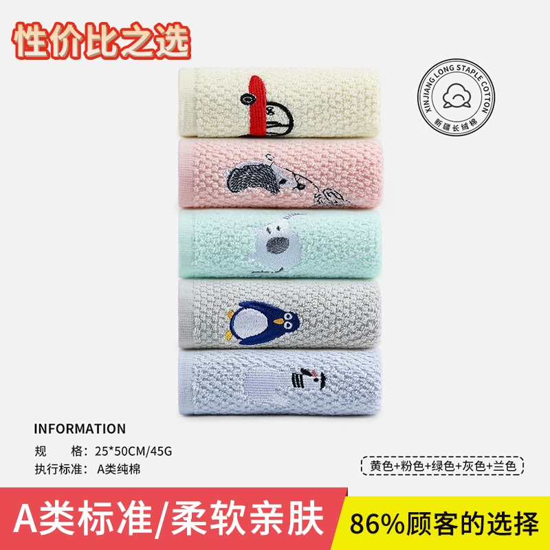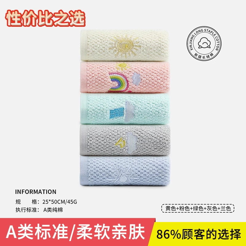 | nameOriginal | Jialiya children's towel pure cotton face wash bath household male and female baby special cotton soft absorbent small towel |