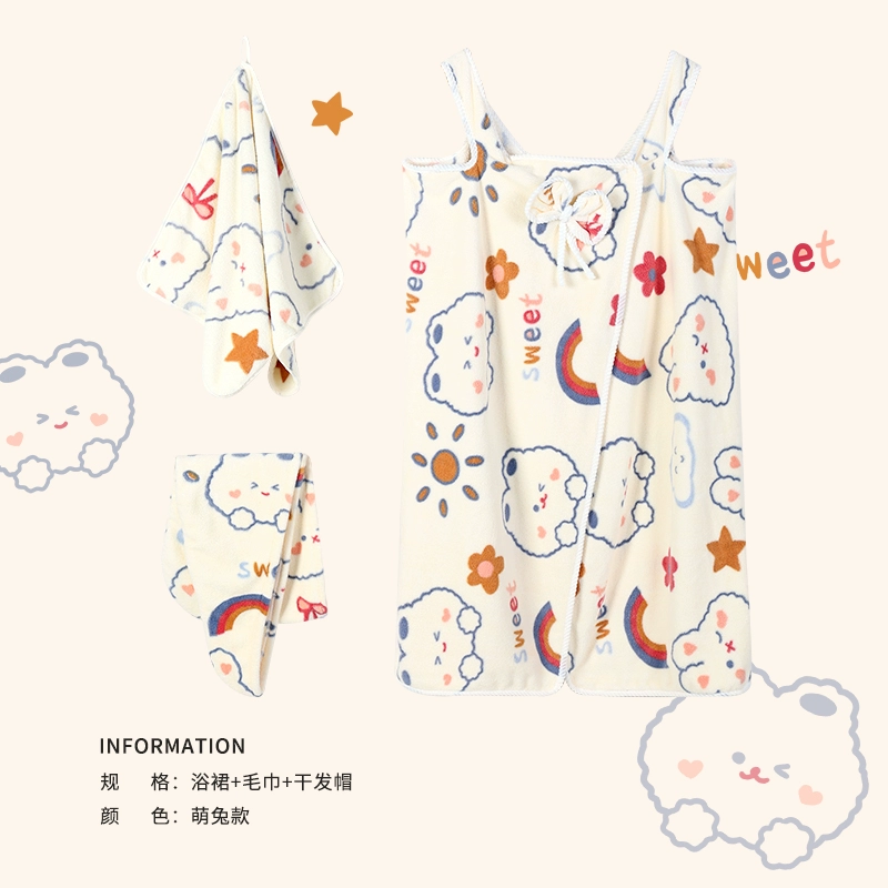 Jialiya women’s pure cotton three-piece wearable bath towel