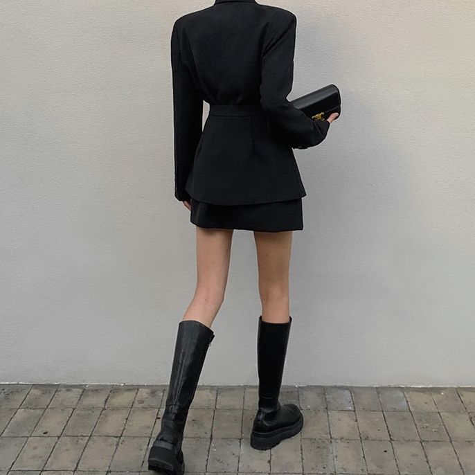| nameOriginal | Jiang Hemei Gao Class Design Sense Black Shoulder Pad Suit Jacket Women's Waist Temperament Two-Wearing Suit (Waist Seal) |