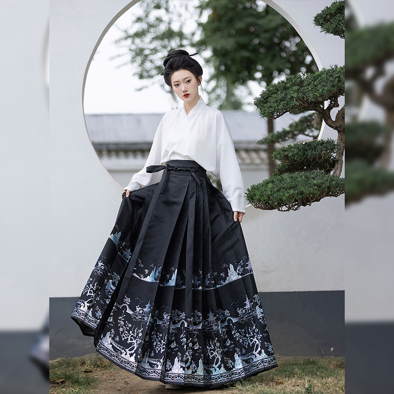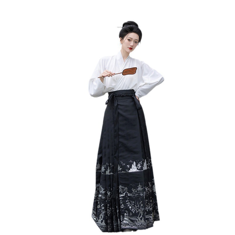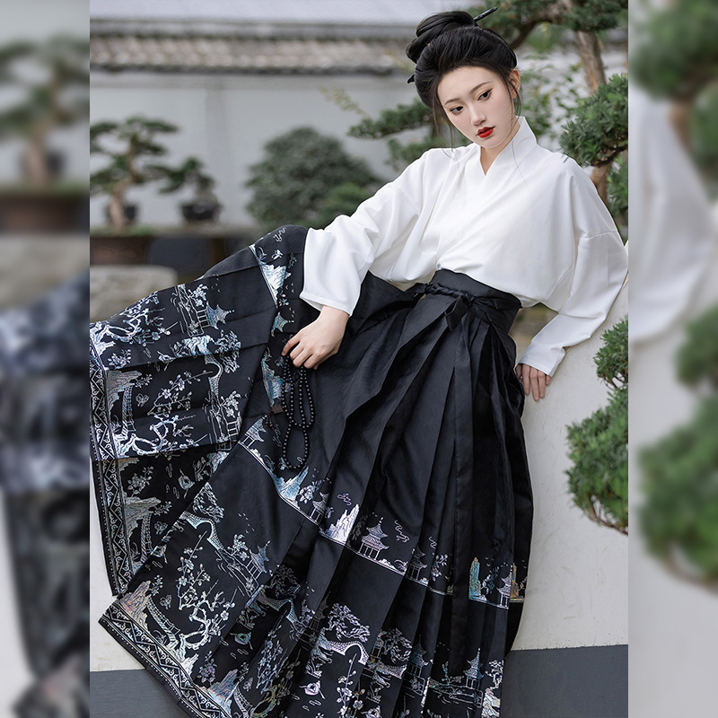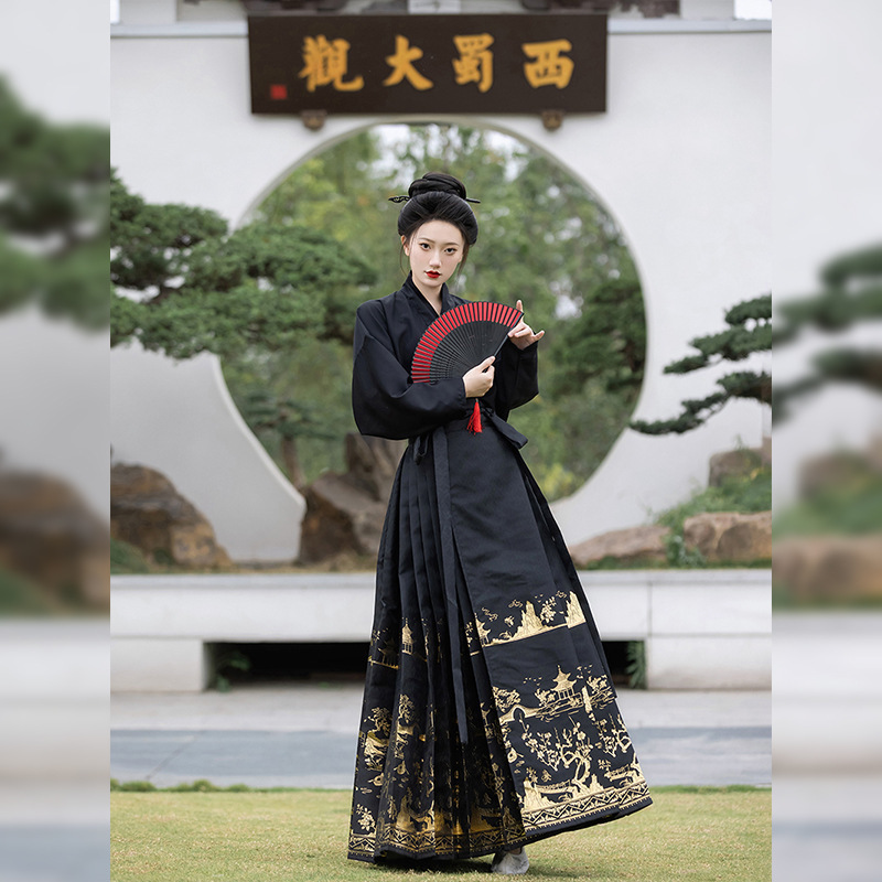 | nameOriginal | Jiangnan misty rain 2024 spring antique horse-faced skirt woven gold woven silver skirt new Chinese-style mother-in-pearl four-season suit |